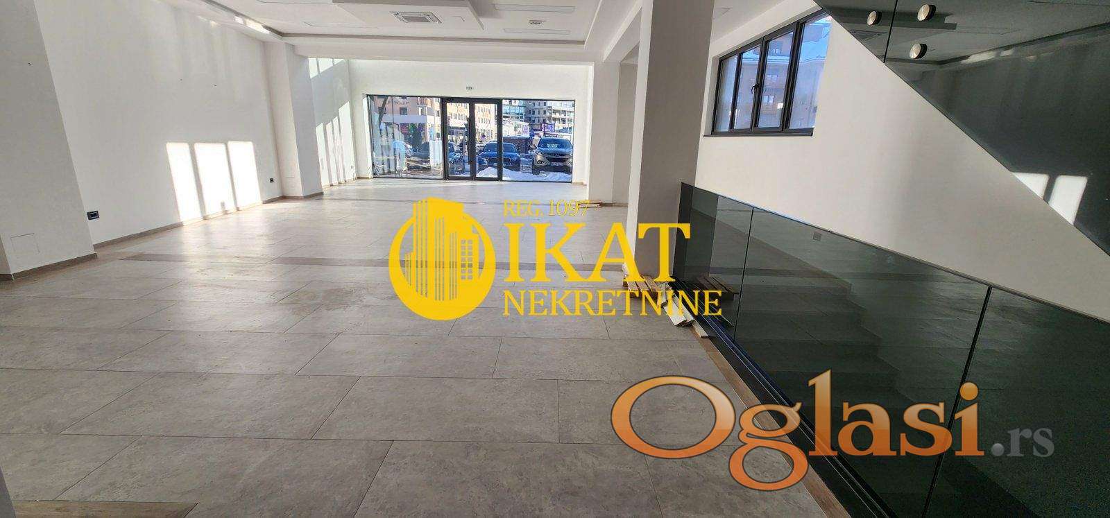 Cela prednja strana ovog prostora je potpunosti u staklu što mu daje odličnu prirodnu osvetljenost, kao i veliki stepen vidljivosti