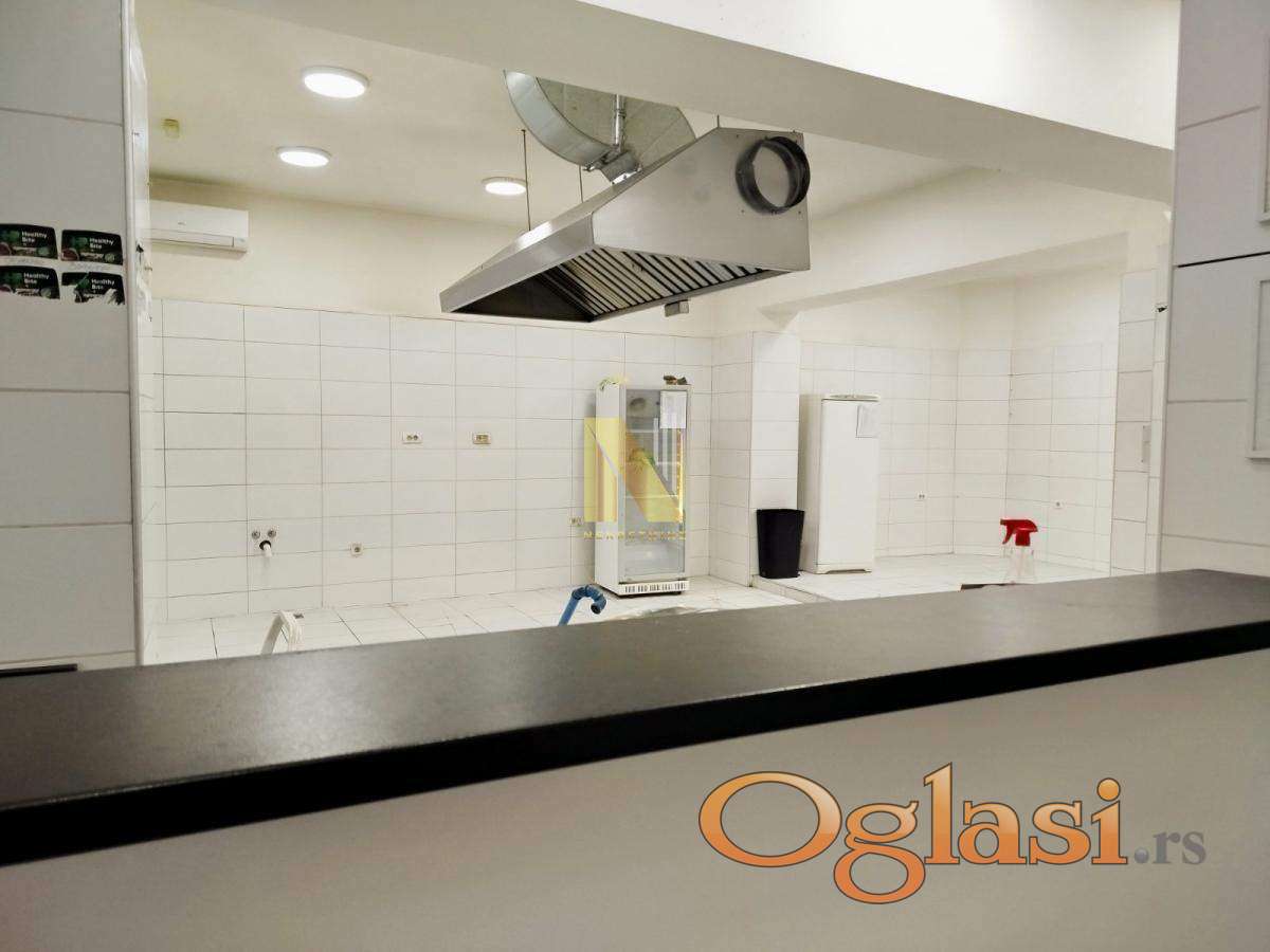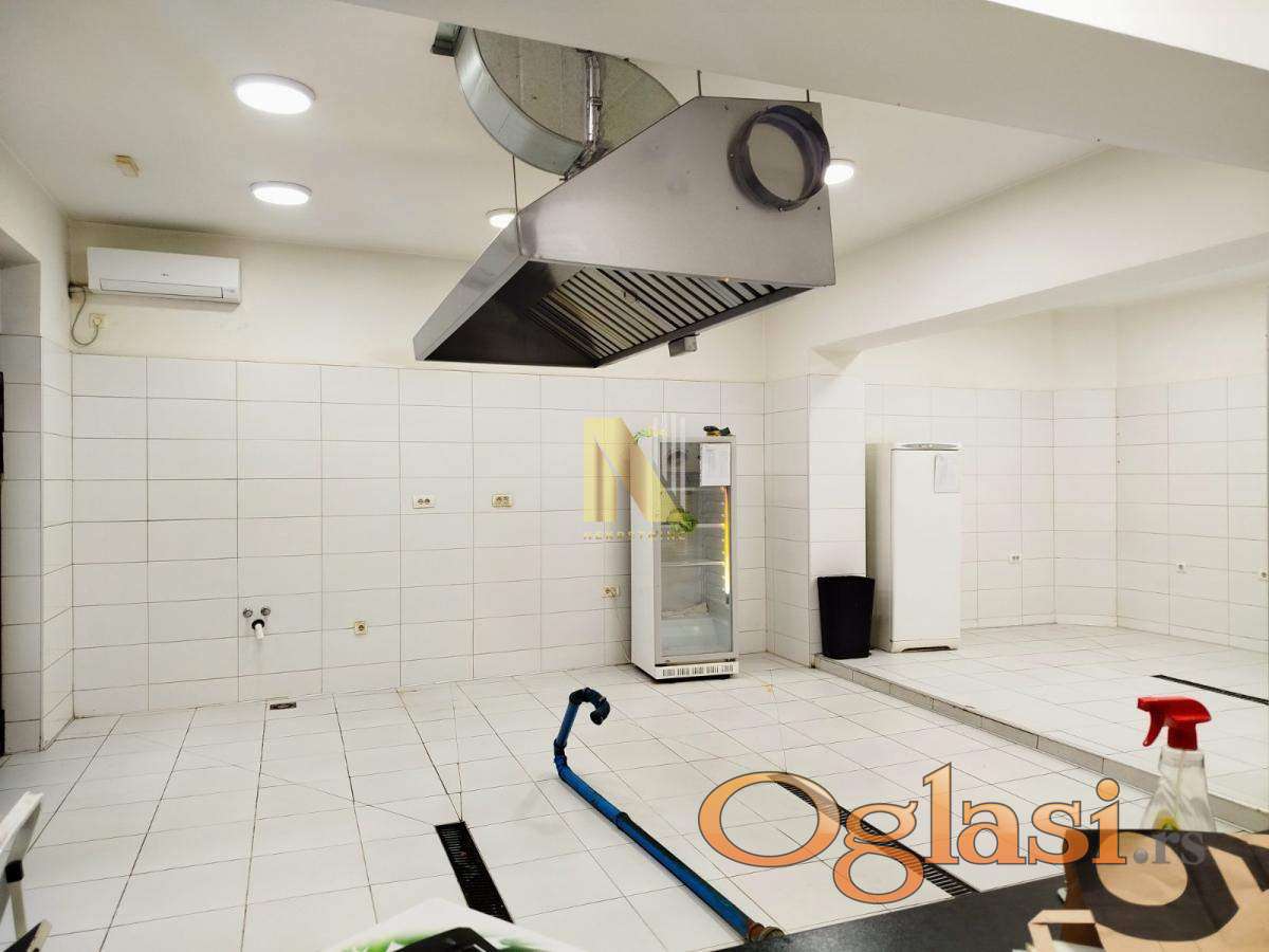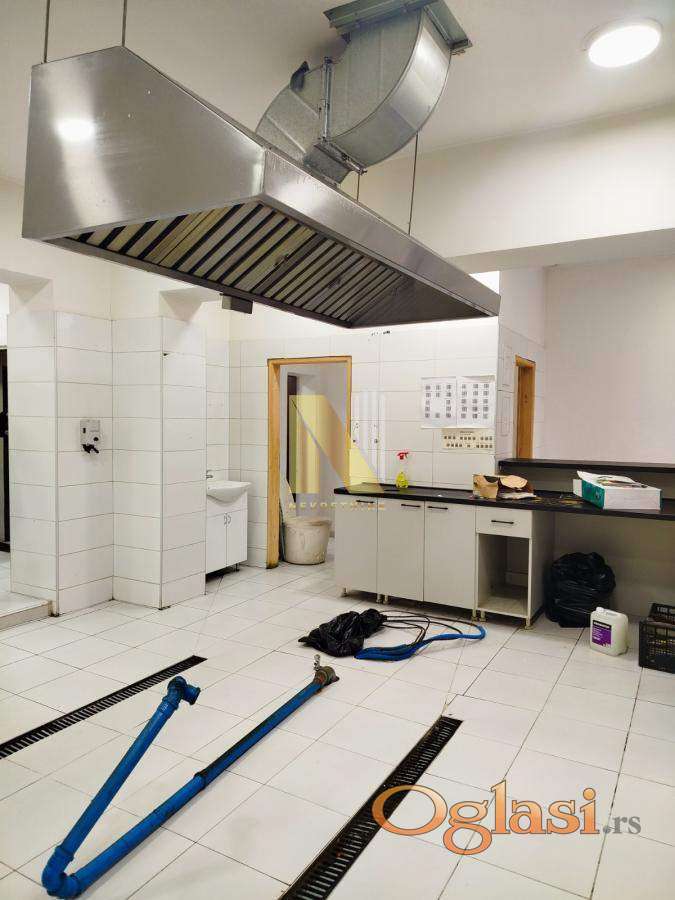- U prilici smo da Vam pondimo odličan poslovni prostor na prometnoj lokacji - Priveden nameni trenutno za prodaju hrane (kuhinja) - Ugrađena ventilacija - Sastoji se od kuhinje i prijemnog pulta, 2 mokra čvora i magacina - Površina je 70m2 - Od opreme ostaje pult, ventilacija i hauba, Cena zakupa iznosi 800e + depozit + posrednička naknada u iznosu od 100% jednokratno Za sve dodatne informacije, obratiti se na broj telefona 066 82 92 400 Miodrag Jović ili 066 82 92 225 Luka Đurović, Bulevar Evrope 44, N-NEKRETNINE, upisan u registar posrednika 1405