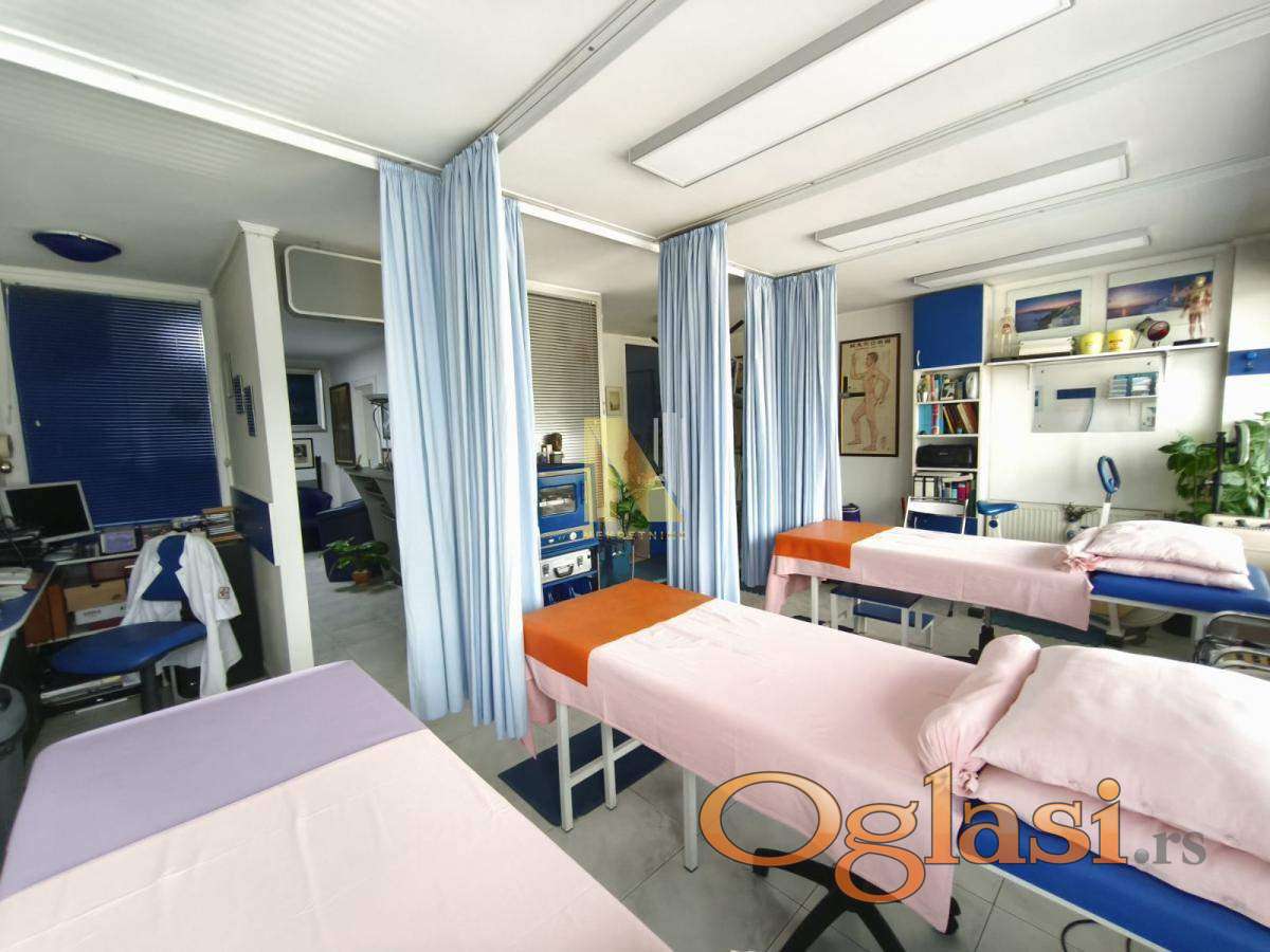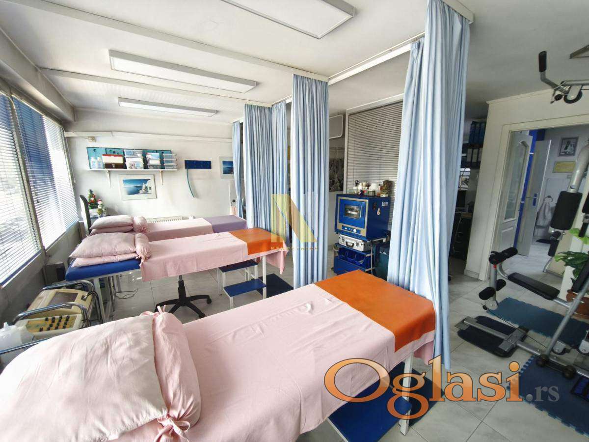 Izdaje se lekarska ordinacija 19 godina aktivna u oblasti fizikalna medicina i rehabilitacija. 54 m2, podeljena na 4 radna prostora (čajna kuhinja sa sanitarnim čvorom, čekaonica, lekarska soba i terapijski prostor.