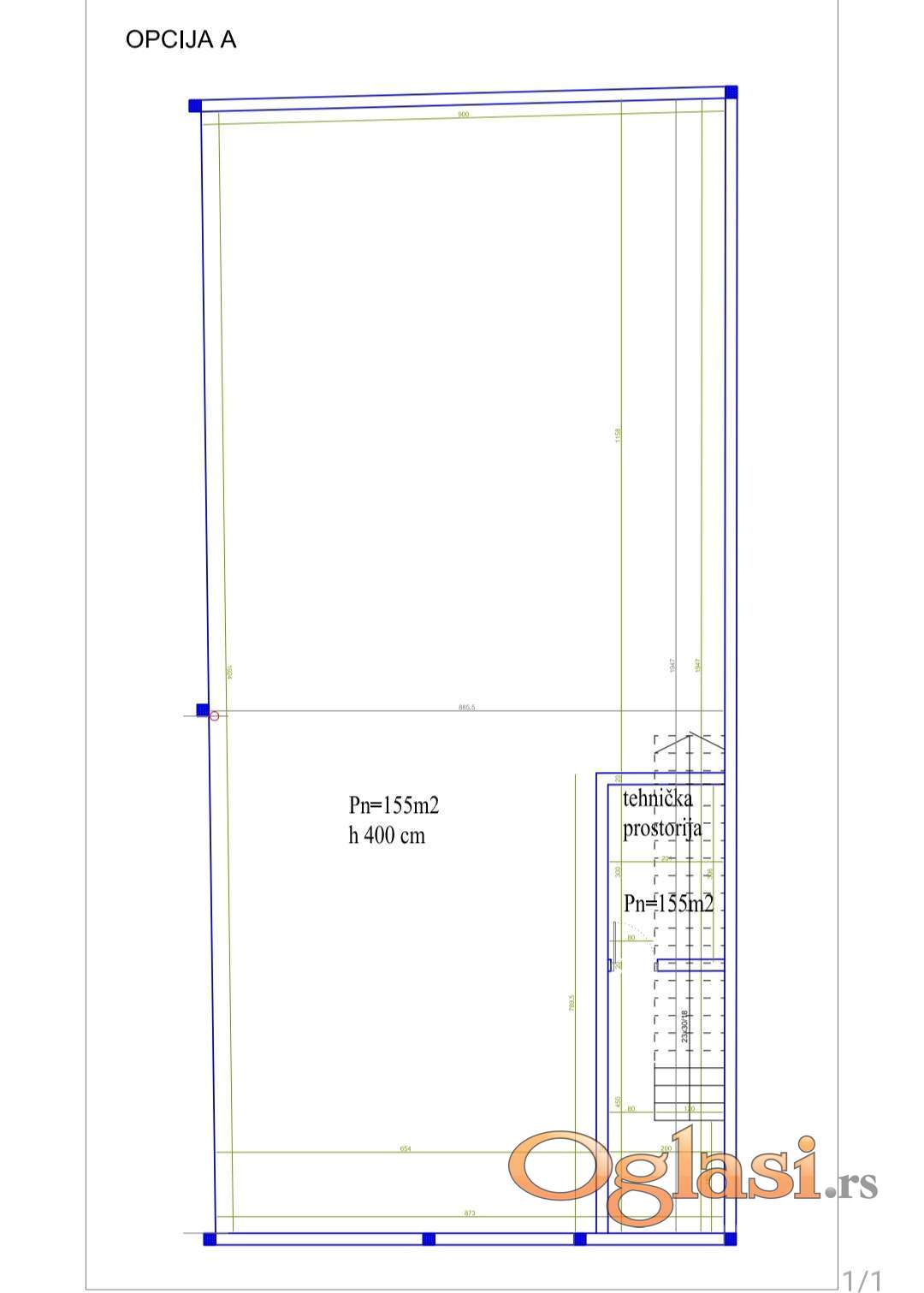 - Površina prizemlja: neto 155m2 čiste površine, magacin 60m2