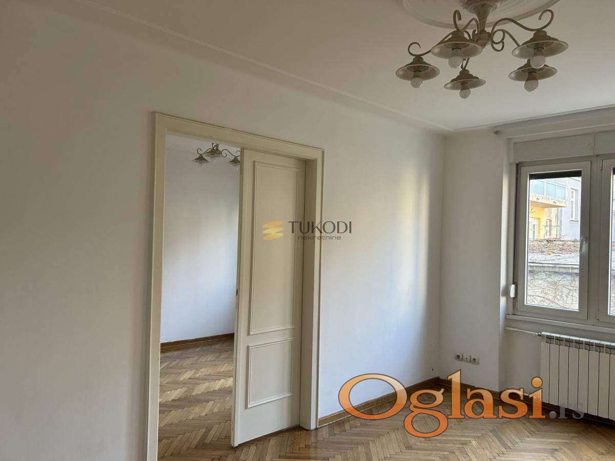 U ponudi je šarmantan salonski stan, smešten u blizini Skupštine– nekretnina koja se retko pojavljuje na tržištu. Nalazi se u predratnoj zgradi sa urednim mermernim ulazom i liftom. Stan čine ulazni deo, dve prostrane i odvojene prostorije, čajna kuhinja i kupatilo sa tuš kabinom. Prostor je temeljno renoviran – zamenjene su elektro i vodovodne instalacije, postavljena je nova stolarija, a unutrašnja vrata su restaurirana, zadržavajući prepoznatljiv šarm starogradnje. Orijentisan je ka dvorištu, što obezbeđuje mir, tišinu i obilje prirodnog svetla. Zahvaljujući rasporedu i izuzetnoj lokaciji, idealan je kako za stanovanje, tako i za poslovnu namenu – IT kancelariju, agenciju, advokatski ili projektantski biro i slične delatnosti koje zahtevaju prestižnu adresu i miran ambijent. Cena mesečne rente je 700 eu + depozit 700 eu+ 50% prve zakupnine agencijska provizija Zakažite gledanje Agent: Nada Risteski 061 111 84 80 Nekretnine TUKODI doo Bulevar Zorana Đinđića 45v Novi Beograd Registar posrednika 1817