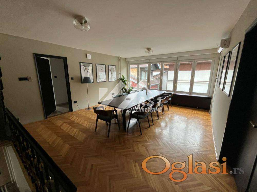 IZDAJE SE TRO-ETAZNA KUCA U CENTRU 280m2 kuca na tri nivoa sa garazom i dvoristem tri parking mesta sest soba i tri kupatila kuhinja opremljena sa sudo-masinom i friziderom useljivo odmah cena 3000eur kontakt 069 2888 507