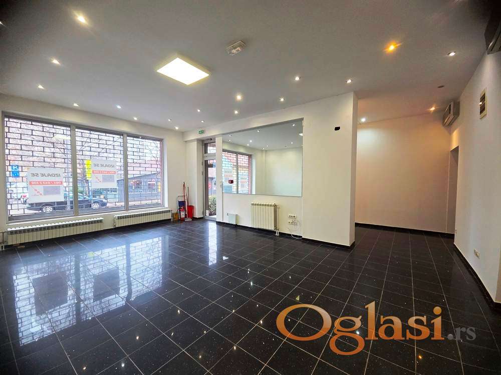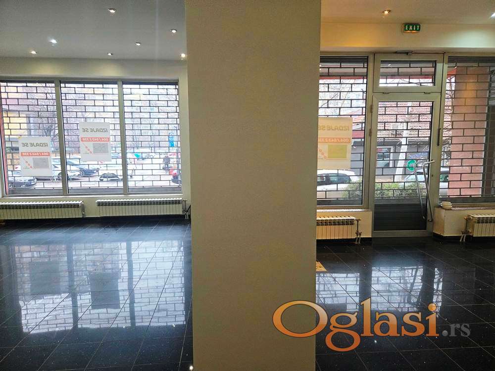 Izdajemo reprezentativan lokal na dobroj lokaciji i sa dobrom pozicijom. Površina je 86m2 . Lokal se sastoji od glavne velike prostorije i jedne manje do ulice, fizički odvojena kancelarija, tri sanitarna čvora od kojih je jedan sa tuš kabinom. Ono što je prednost lokala su dva ulaza, veliki portali obezbedjeni transparentnim rolo rešetkama i uočljivost . U pomenutoj radnoj sobi je instaliran umivaonik, što je veoma bitno za mnoge zdravstvene i kozmetičke delatnosti. Takođe poseduje i opremljenu kuhinju. Useljivo. Vlasništvo fizičkog lica. Moguća manja korekcija cene.