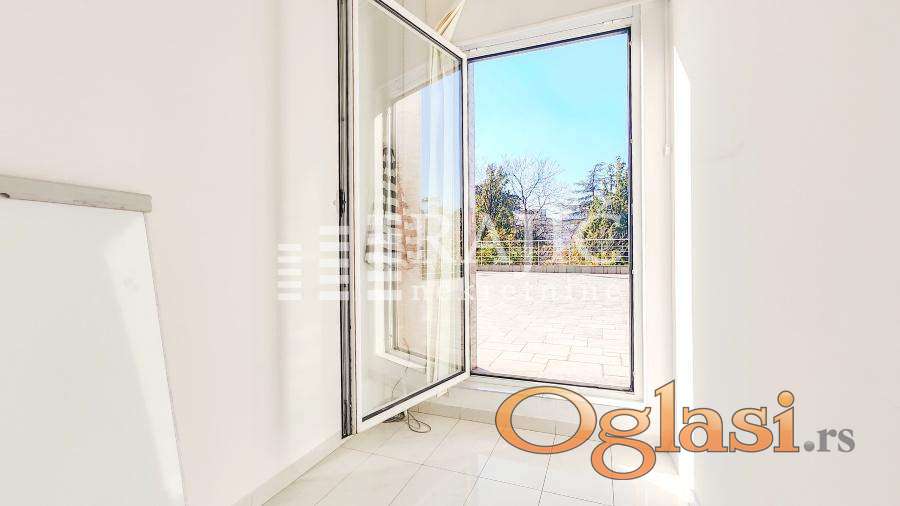 Lokal u Lominoj ulici, u neposrednoj blizini Zelenog venca i Balkanske ulice, odlična povezanost sa svim centralnim delovima grada, na samo par minuta hoda od Terazija i Beograda na vodi. Lokal se nalazi u prizemlju moderne zgrade, zapadno je orijentisan i gleda na dvorište. Površina: 41.52 m2 Struktura: predsoblje, jedna velika prostorija, jedna manja prostorija (pogodna za arhivu, garderobu ili magacin) i kompletno opremljen mokri čvor.Obe prostorije imaju direktan izlaz na veliku zajedničku terasu zgrade .Alu stolarija Keramičke pločice Armstrong, plafon LED paneli, centralni AC sistem (klimatizacija), centralno grejanje sa kalorimetrima (naplata po potrošnji). Stanje: Odmah useljiv, moderan, u održavanoj zgradi. Obavezan depozit u visini jedne mesečne kirije.Procena troškova režija: 100-150 EUR (struja, voda, grejanje održavanje, osiguranje). Mogućnost zakupa garažnog mesta uz doplatu. Idealan za kancelarije, salone, ordinacije ili agencije. Agencijska provizija 60%.