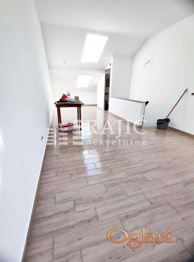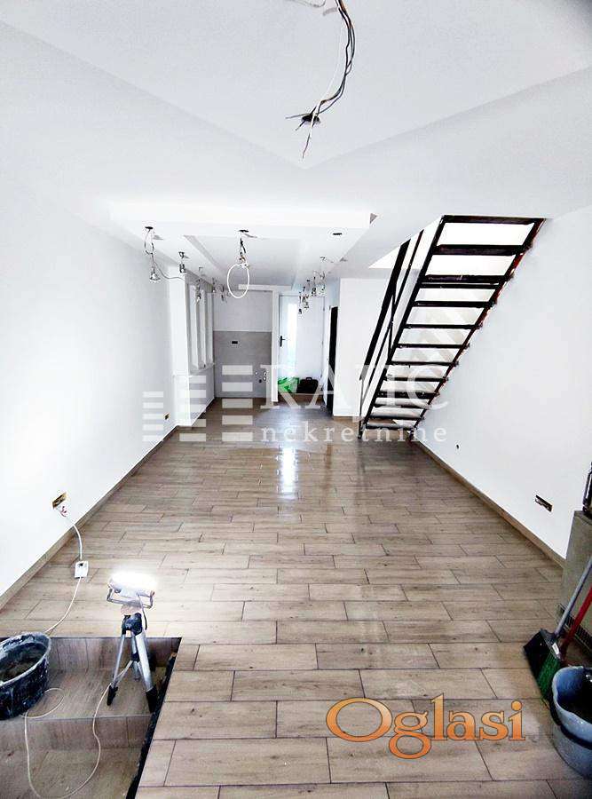 Koncipiran je u dva nivoa, po 38m2 sa po jednim mokrim čvorom na oba nivoa.
