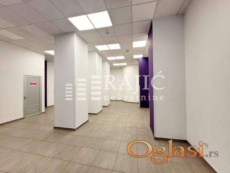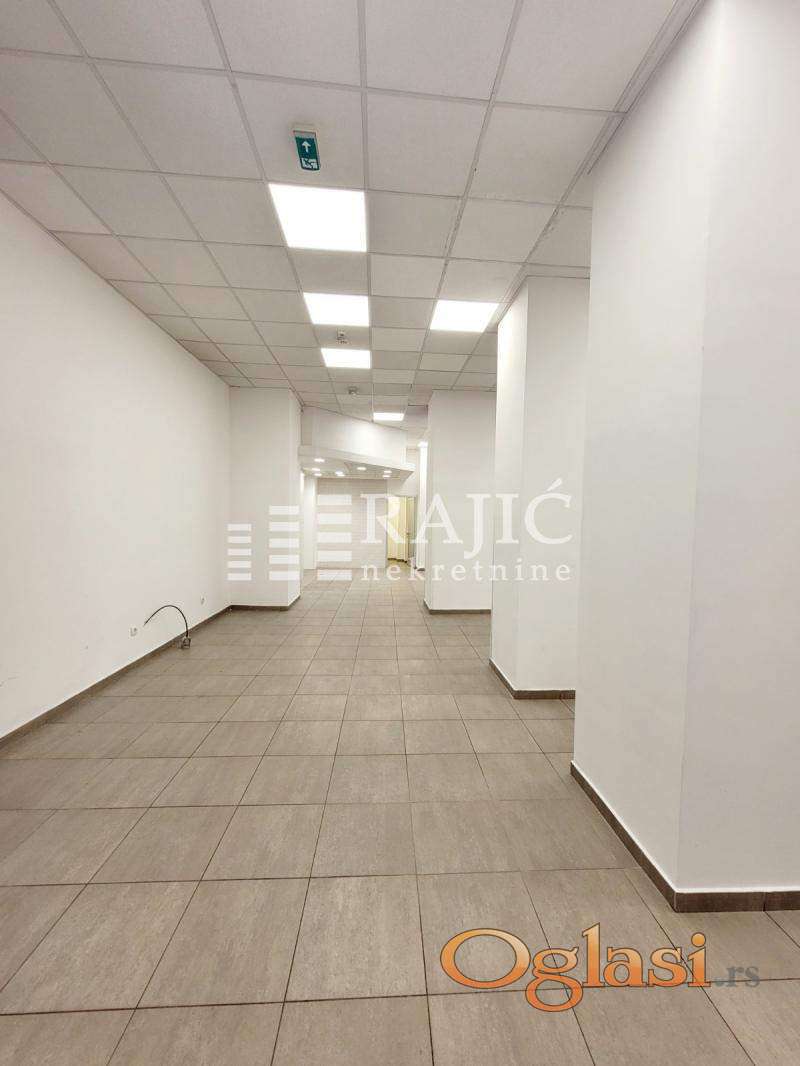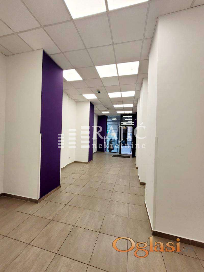 Izdaje se lokal u centru grada, na atraktivnoj lokaciji. Prostor je na dva nivoa: prvi nivo (100m2) je jedna velika prostorija i dve manje, na donjem nivou (49m2) se nalaze tri zasebne prostorije i toalet. Ulaz je sa ulice, dva izloga. Pogodno za banke, firme i druge uslužne delatnosti. Provizija agencije 50%