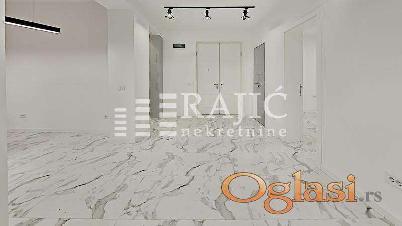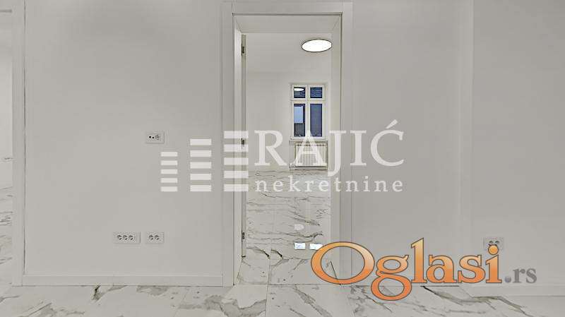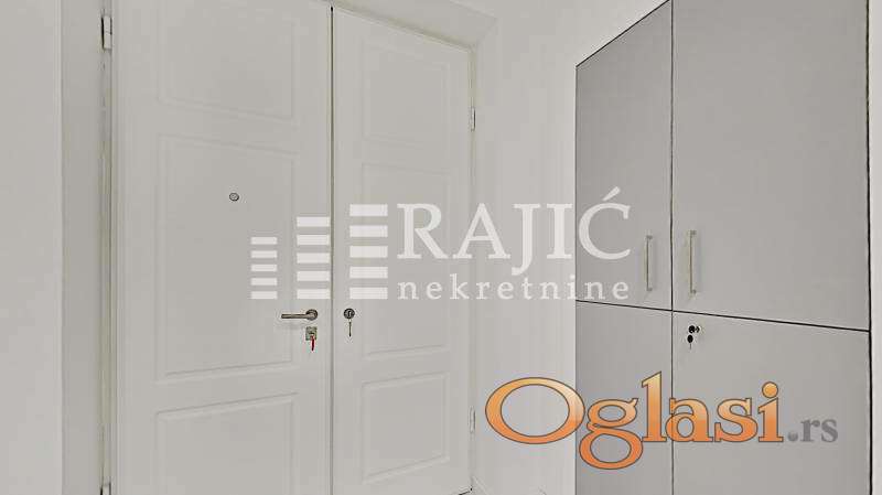 Prostorije: prijemni deo čini otvoreni prostor sa uvučenom kuhinjom, dve kancelarije su odvojene i kupatilo.