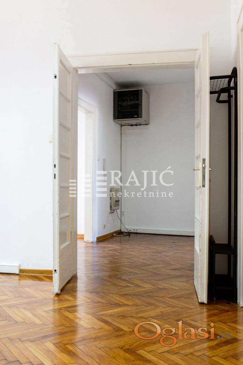 Odličan salonski stan na dobroj lokaciji, pogodan za poslovni prostor. Izdaje se svetao i prostran salonski stan za namenu poslovnog prostora. Prostorije: ulazno predsoblje, tri velike i dve manje prostorije, kuhinja, mokri čvor i zastakljena terasa. Nalazi se na atraktivnom mestu na Savskom trgu sa pogledom na trg i na spomenik. Izdaje se kao nenamešten, a moguće je opremanje kancelarijskim nameštajem. Renoviran,klimatizovan, sa pet telefonskih linija. Zgrada sa mermernim ulazom, interfonom, liftom. Parking je zoniran. Agencijska provizija koju placa ZAKUPAC iznosi: 60 % od prve mesecne zakupnine za zakup u trajanju od 1 do 12 meseci. 75 % od prve mesecne zakupnine za zakup u trajanju od 13 do 59 meseci. 100 % od prve mesecne zakupnine za zakup u trajanju od 60 meseci (5 godina) i vise.
