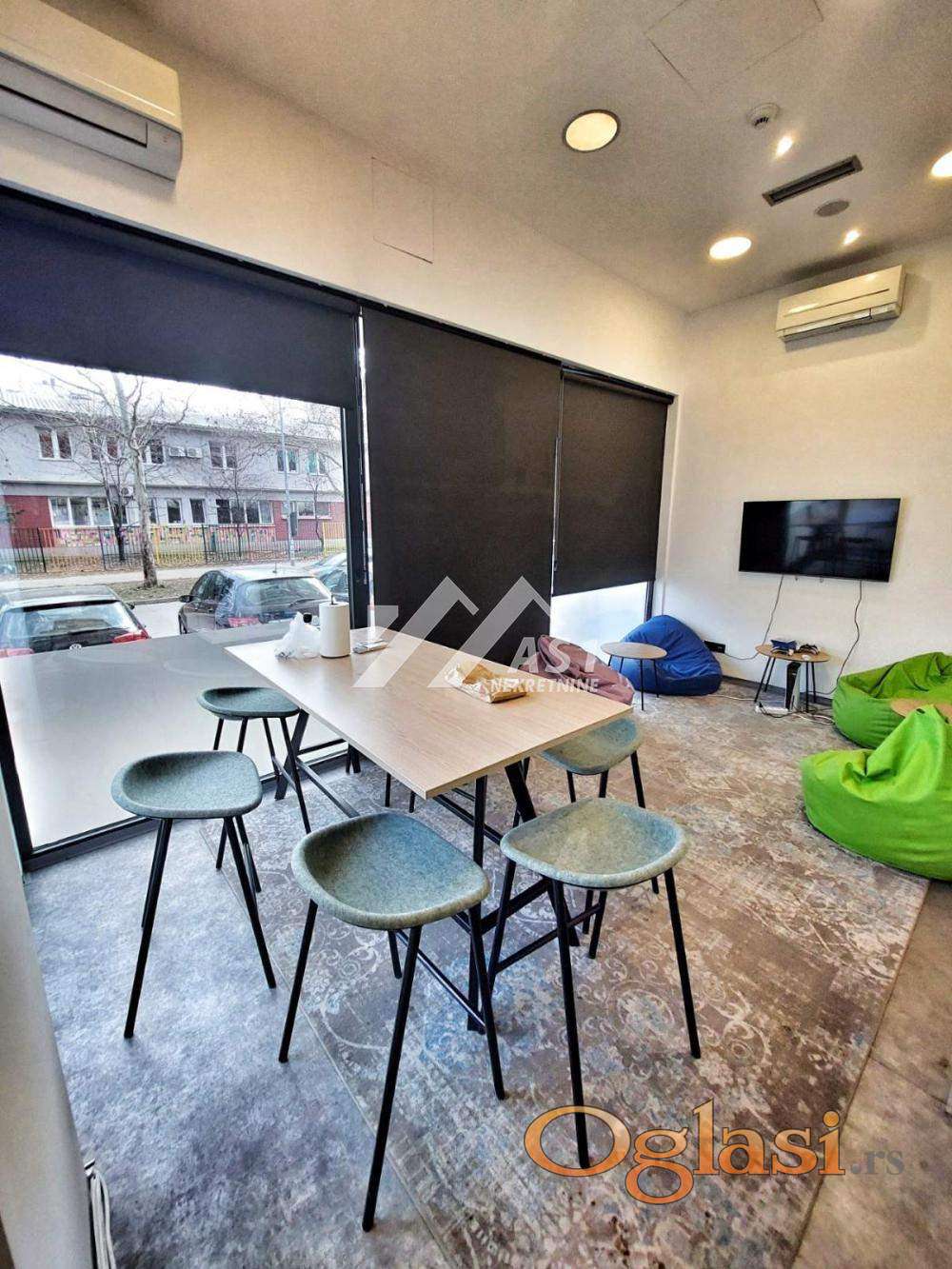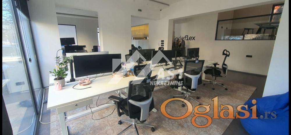 Izdaje se poslovni prostor ukupne površine 190 m², visina plafona 4m. Lokal ima odličnu vidljivost i prirodno osvetljenje, a okruzen je zelenilom. Ceo lokal je u staklenim portalima sa black-out zavesama, ulicno orijentisan, gleda na sever pa leti nema problema sa pregrejavanjem. Manji deo prostora je izveden kao galerija. Lokal je idealan za izložbeni salon, kancelarijski prostor / predstavništva kompanija, medicinske i srodne delatnosti, kao i druge poslovne namene koje zahtevaju reprezentativan prostor. Lokal ima alarmni sistem kao i centralni sistem klimatizacije i grejanja. Zbog ustede troskova iskljucen je sa sistema gradskog centralnog grejanja. Prostor je dostupan od 15. marta 2026. godine. Cena je 2200 euro plus PDV (PDV je odbitna stavka ukoliko je zakupac pravno lice)