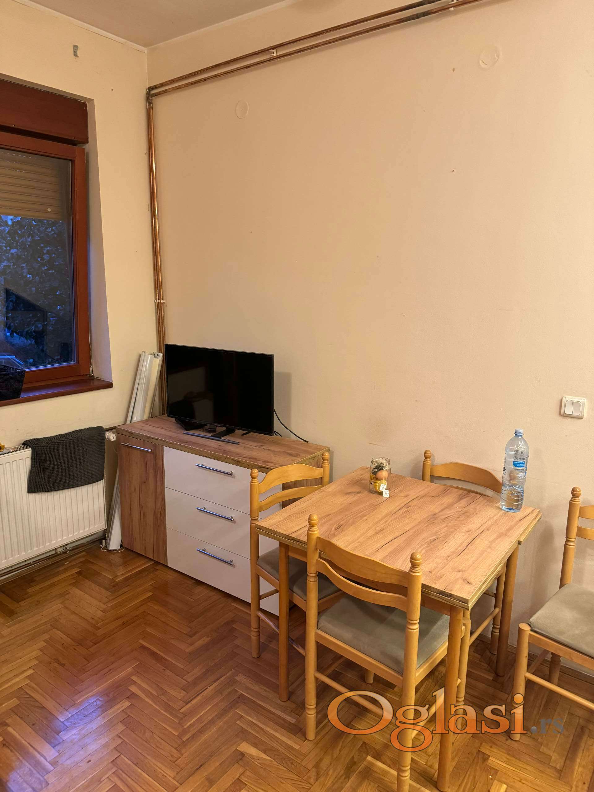 ! Pogodna za dvoje . Garsonjera,   lepo opremljena ima parking u dvorištu. Klima uredjaj, topla voda gradska.Mali računi za struju.  0642105555