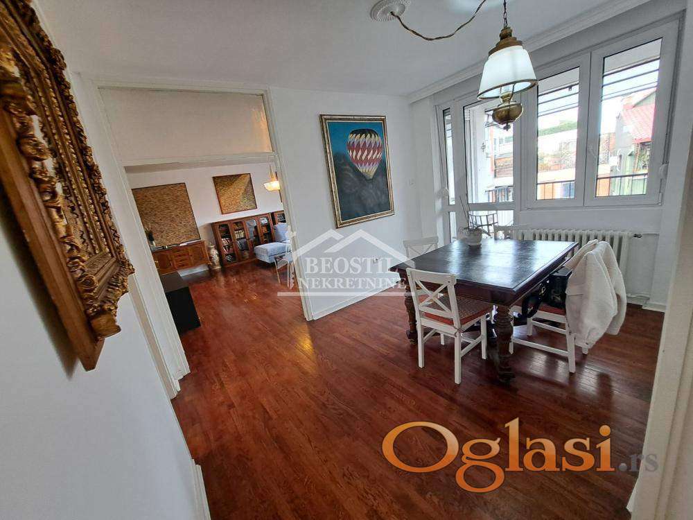 Izdaje se predivan 4.0 stan u srcu Vračara, namešten, dvostran, sunčan, sa dve terase, blizina Kalenić pijace. Odmah useljiv.