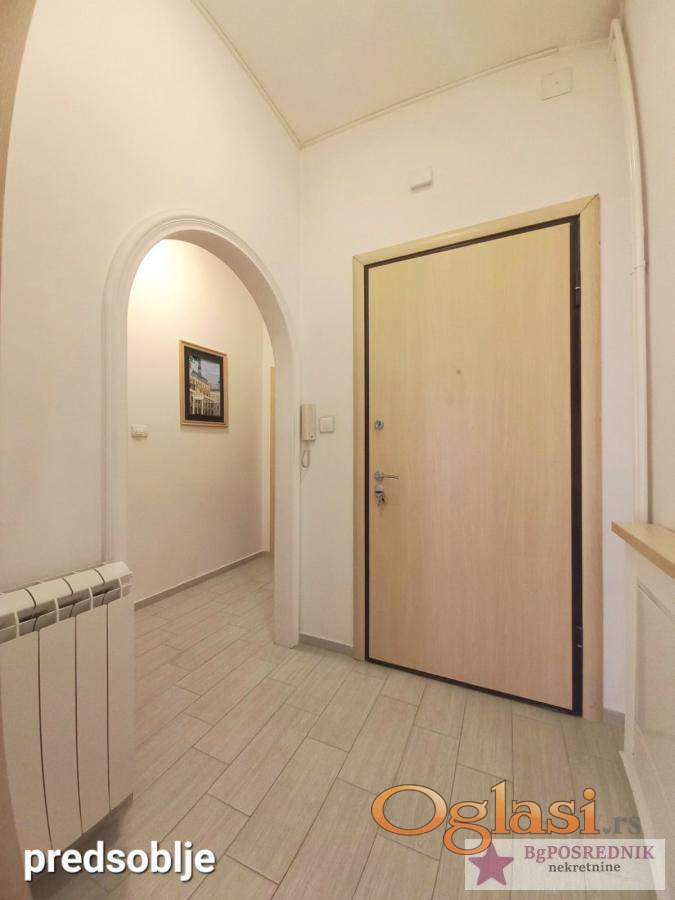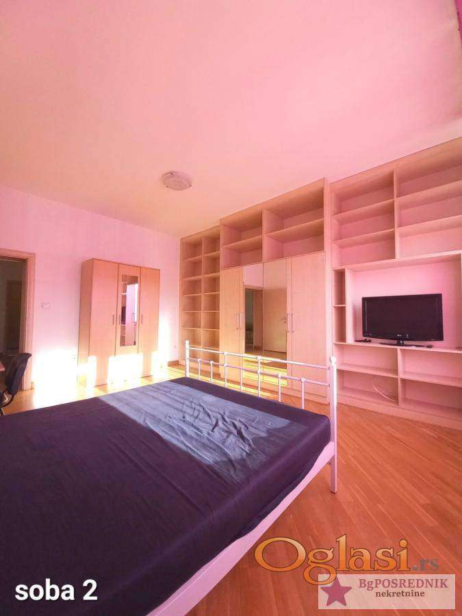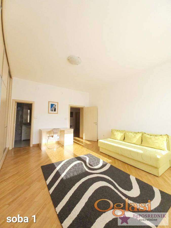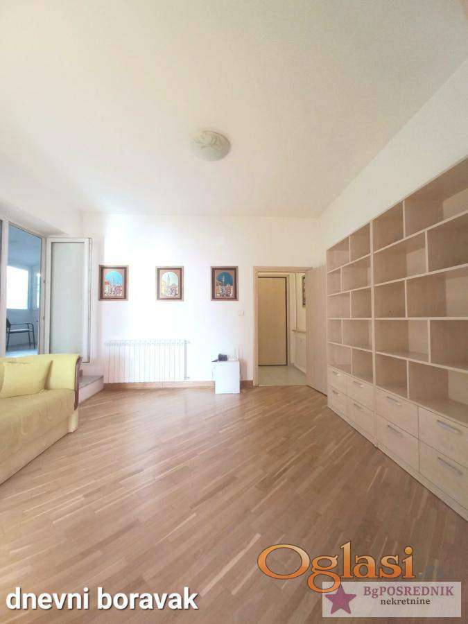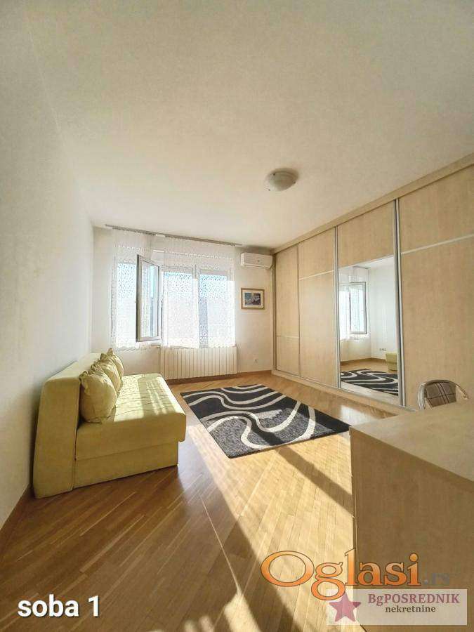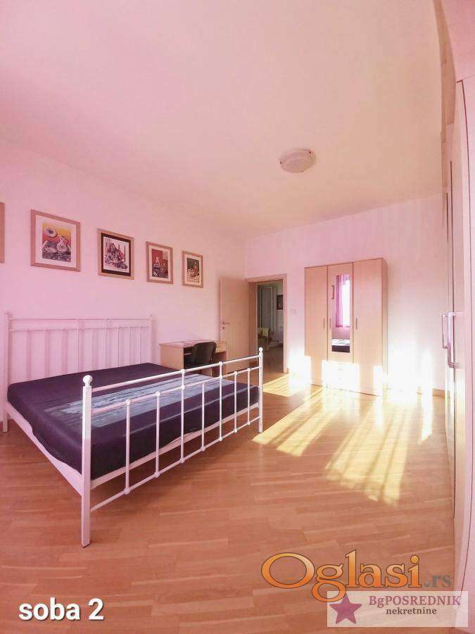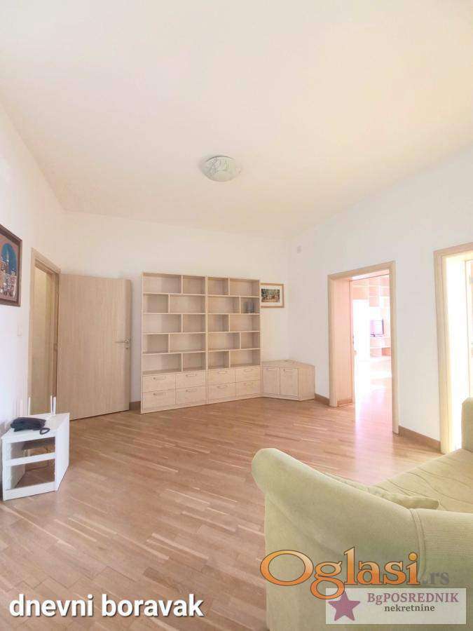 Prostran porodični stan, dvostrano orijentisan, funkcionalnog salonskog rasporeda, namešten.