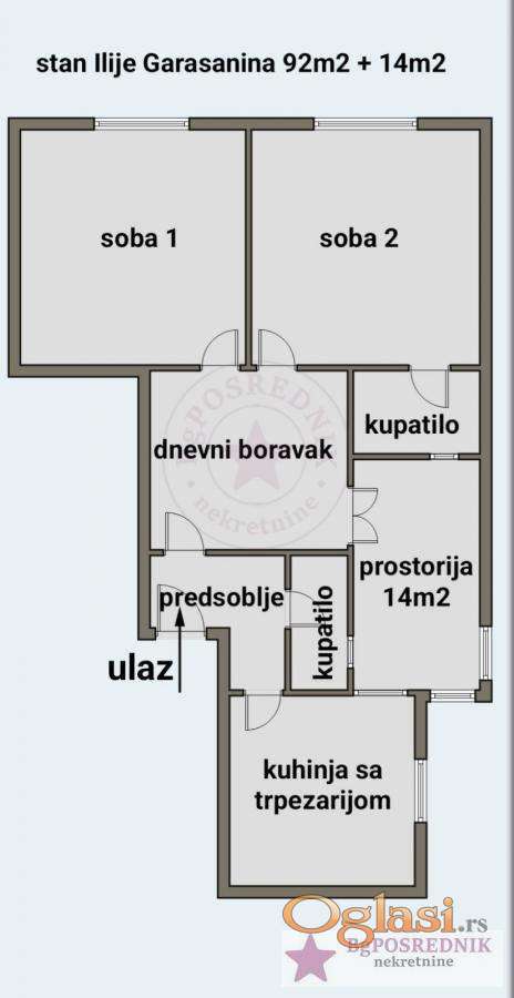 Palilula, Tašmajdan, Ilije Garašanina, 92+14m2