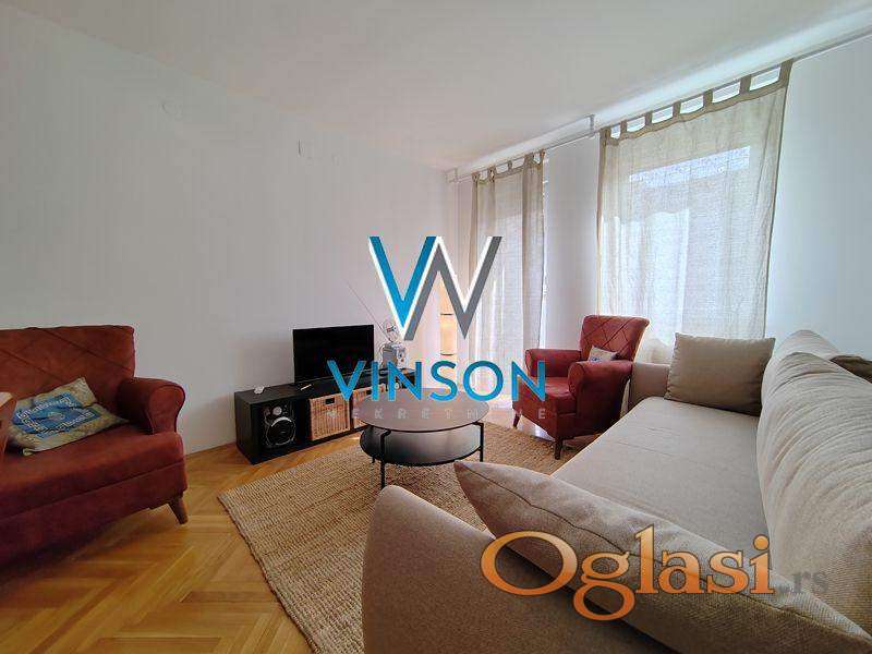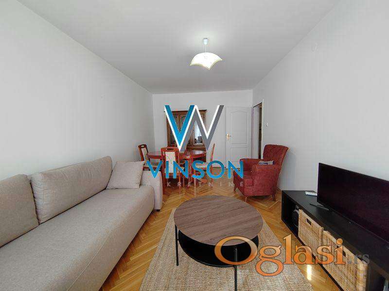 Novi Sad, Nova Detelinara, ulica Hadži Ruvimova. Namešten, komforan trosoban stan na atraktivnoj lokaciji. Blizina Bulevara Evrope i Novosadskog sajma. Ovaj stambeni prostor čine prostran dnevni boravak sa trpezarijom, odvojena kuhinja, velika spavaća soba, druga, manja stapaća soba koja će biti opremljena po potrebi zakupca, kupatilo sa ležećom kadom i dve terase sa ostavama. Klimatizovan. Ulično orijentisan. Pozicioniran na drugom spratu stambene zgrade sa liftom. Mogućnost parkinga u dvorištu zgrade. Useljiv odmah.(Vinson nekretnine, Novi Sad, Reg. br. posrednika: 1085)