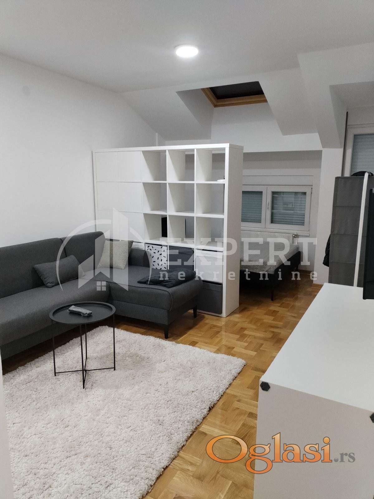 Izdaje se nov stan površine 29m2 na trećem spratu u zgradi sa liftom. Sastoji se od ulaznog hodnika, kuhinjskog dela, jedne višenamenske prostorije, kupatila i terase. Grejanje je etažno sa kotlom na struju koji se nalazi u stanu. Ima klimu. Komplet je opremljen novim nameštajem i svom potrebnom novom belom tehnikom i neuseljavan do sada. Ima mogućnost korišćenja parkinga i podruma. Lepo je osvetljen i orijentisan. Izdaje se ozbiljnim zakupcima na duži vremenski period. Obavezan depozit u visini jedne mesečne kirije.