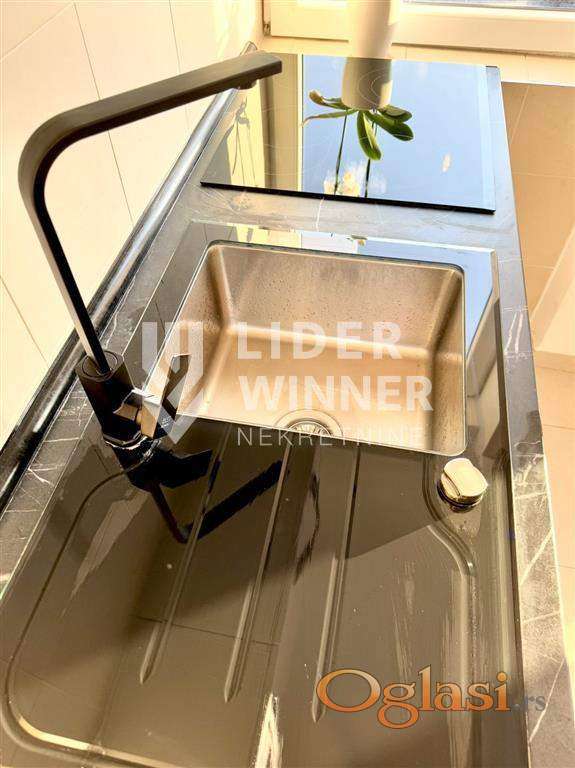 Prostorije: hodnik (predsoblje), dnevna soba sa kuhinjom i trpezarijom, kupatilo, spavaca soba i terasa sa pogledom na dvoriste i park (4m2).