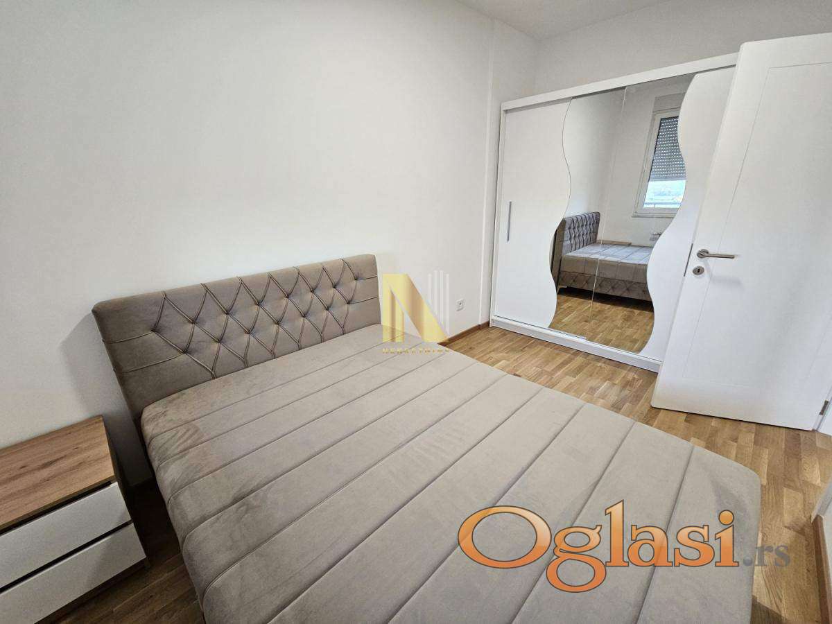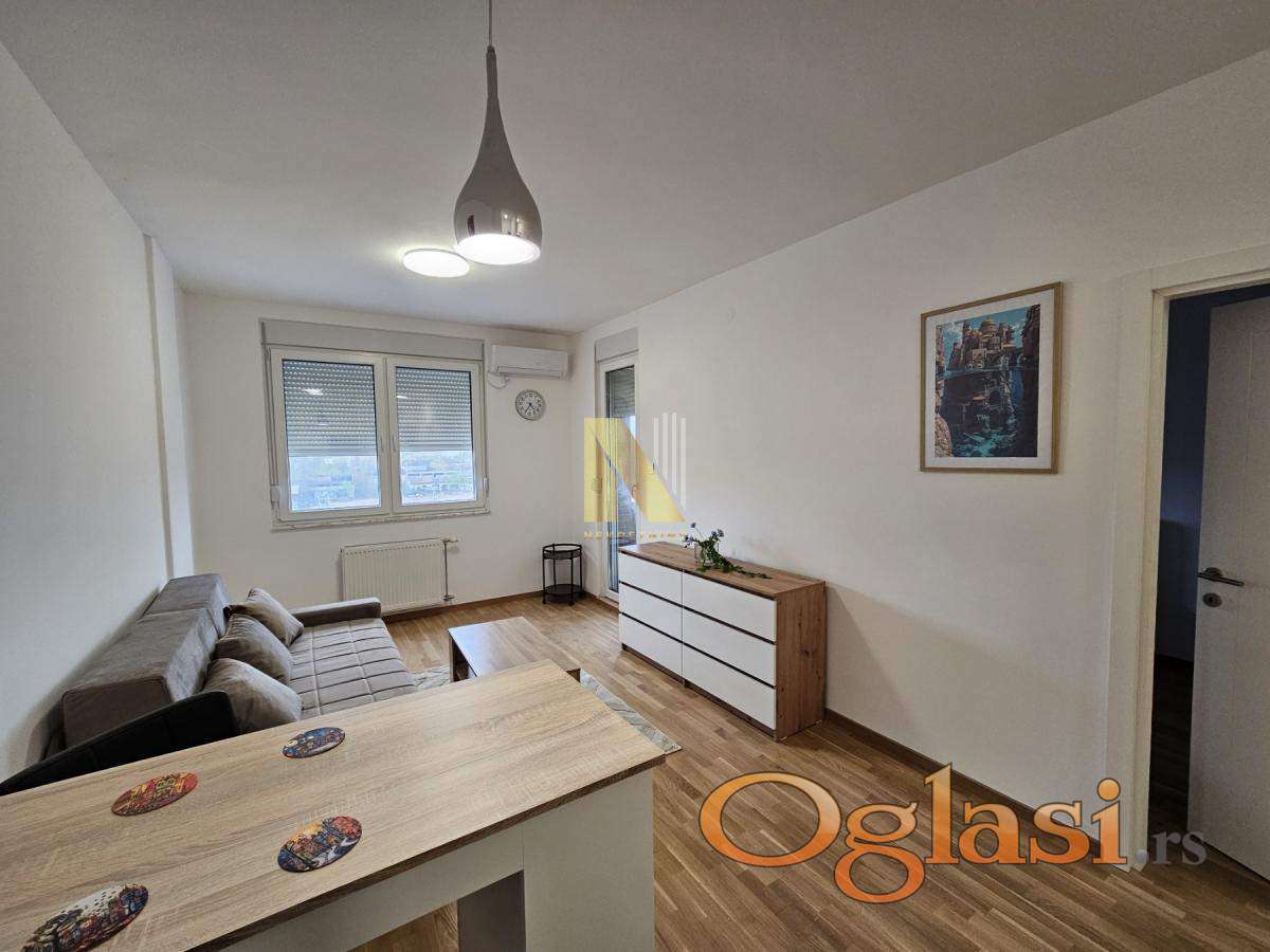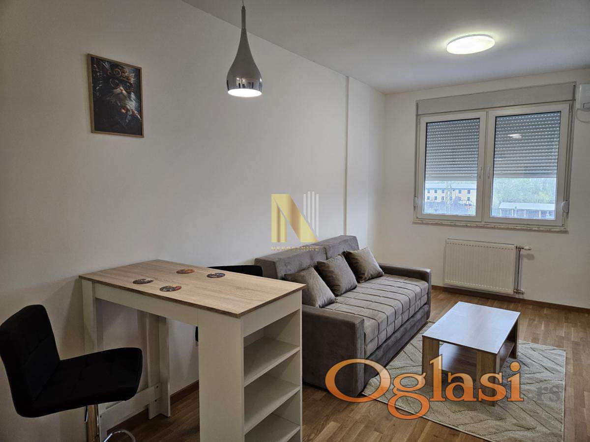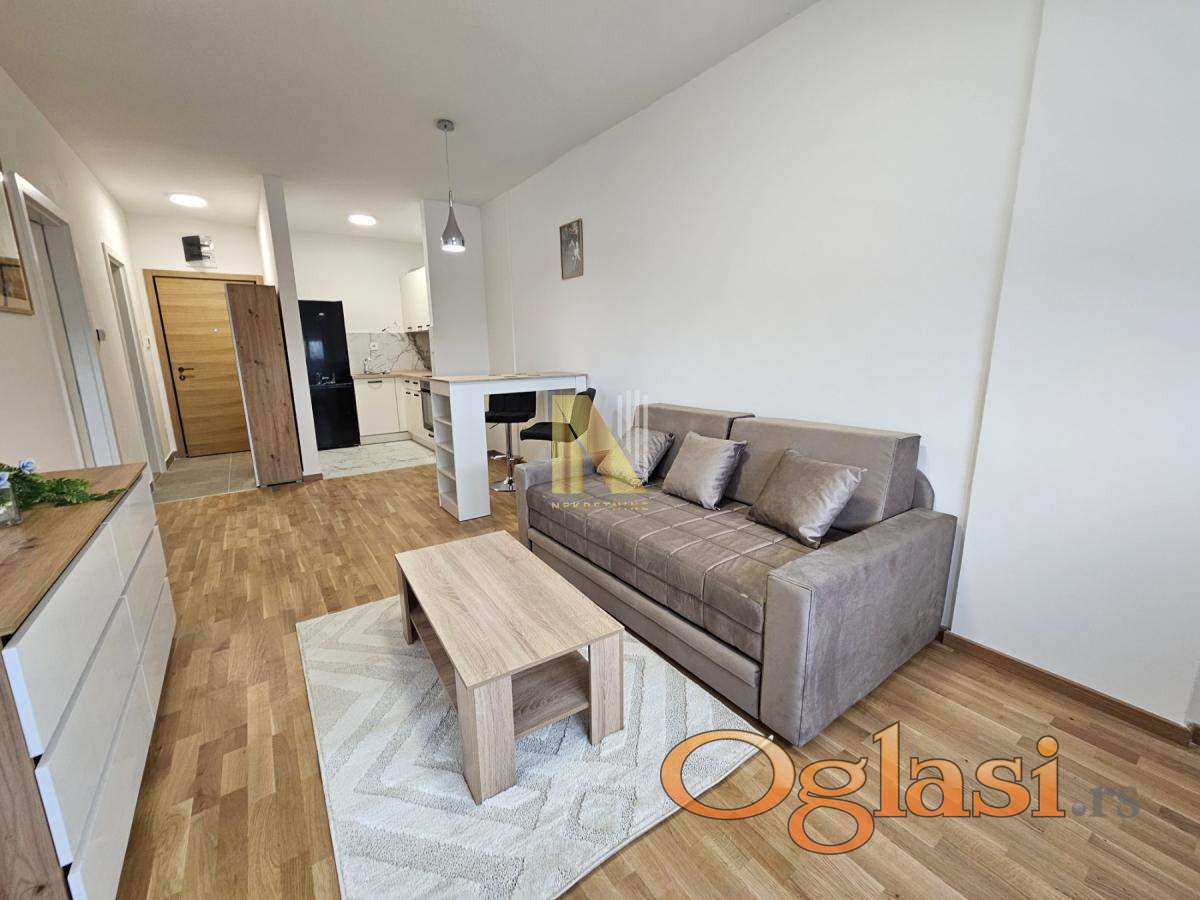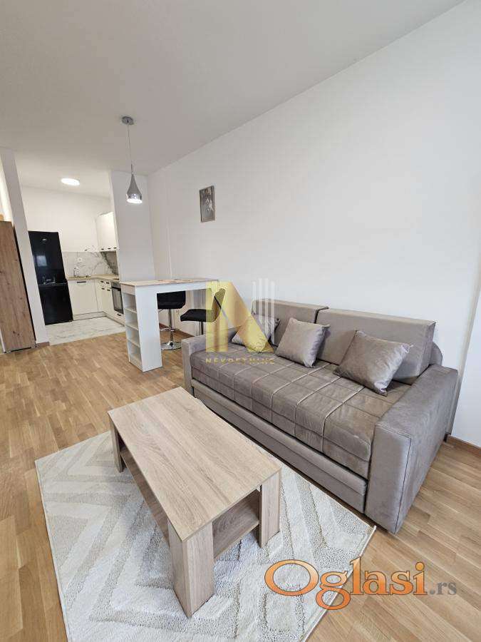 Izdaje se namešten stan površine 43,62m2 u novom stambeno-poslovnom kompleksu.