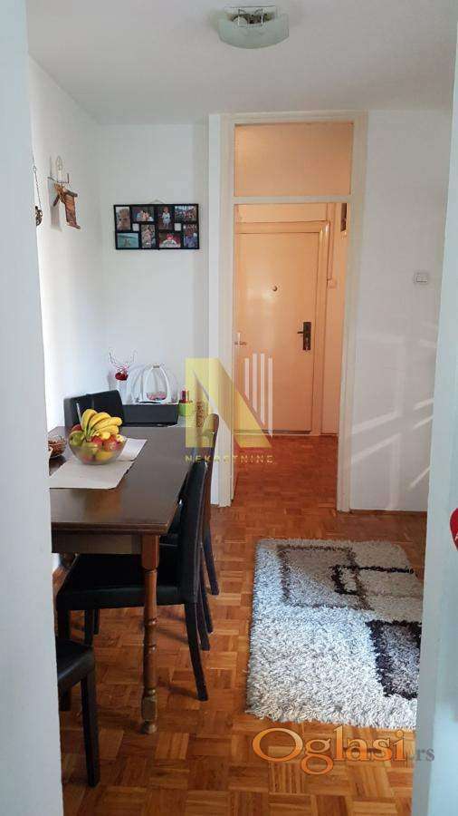 Dnevna soba je prazna, kuhinja je odvojena i ima kuhinjske elemente i šporet. Trpezarija sa stolom i stolicama. U spavaćoj sobi ima ormar i lezaj i jos jedan plakar u hodniku.