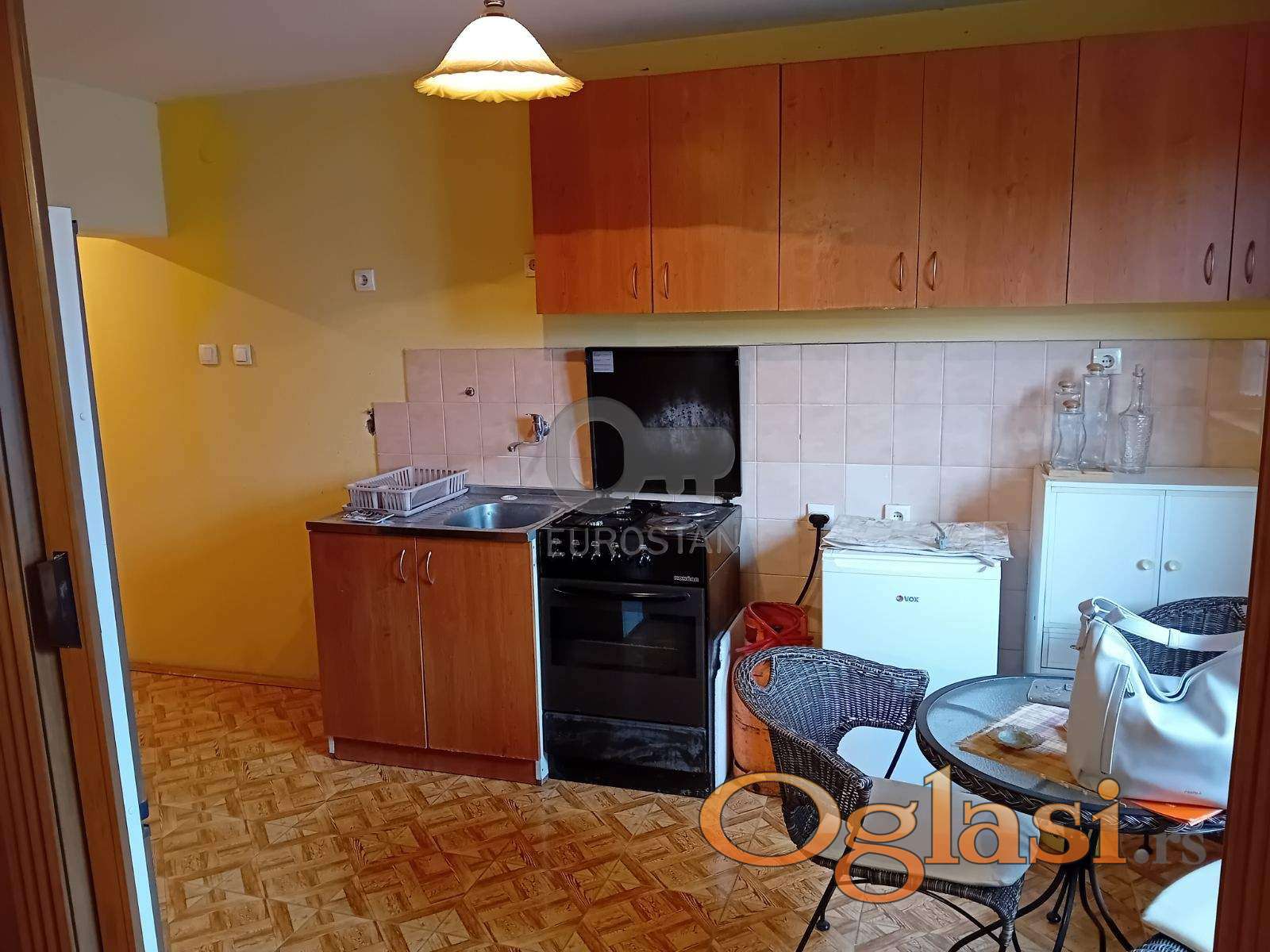 Prostorije: hodnik, kuhinja, dnevna soba, kupatilo i terasa . Agencijska provizija 50%