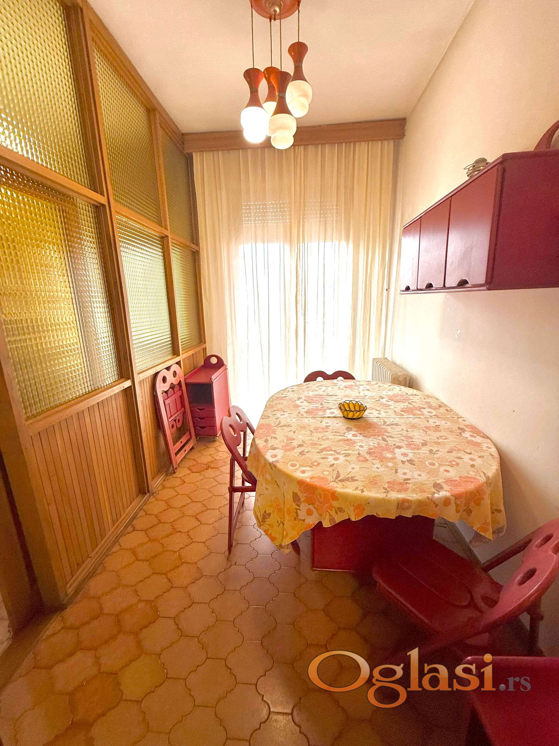 Izdajem komforan kompletno namesten 3-soban stan od 85m2 u Radnickoj ulici. Stan ima visoki plafon i ima 3 sobe, odvojenu trpezariju i kuhinju, kupatilo, ostavu i 2 terase. Blizina centra grada, fakulteta, Spensa i keja.