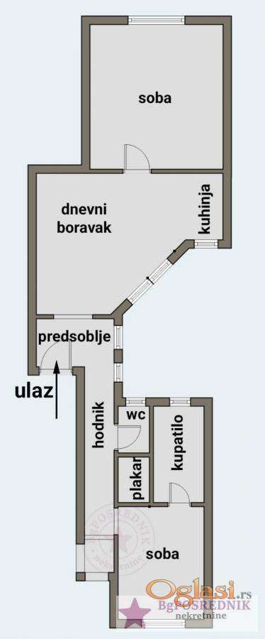 Trostrano je orijentisan i svaka prostorija u stanu ima prozor.