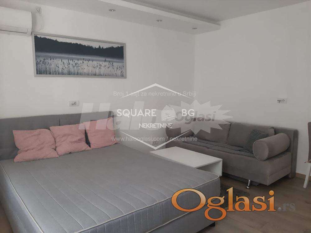 Stan je kompletno renoviran i opremljen svim što je potrebno za udoban, svakodnevan život. Prostor je pažljivo organizovan – poseduje odvojeni trpezarijski deo sa kuhinjom, kupatilo sa tuš kabinom, kao i prostrani bračni krevet za kvalitetan odmor. U dnevnoj sobi se nalazi televizor. Režije 55€.