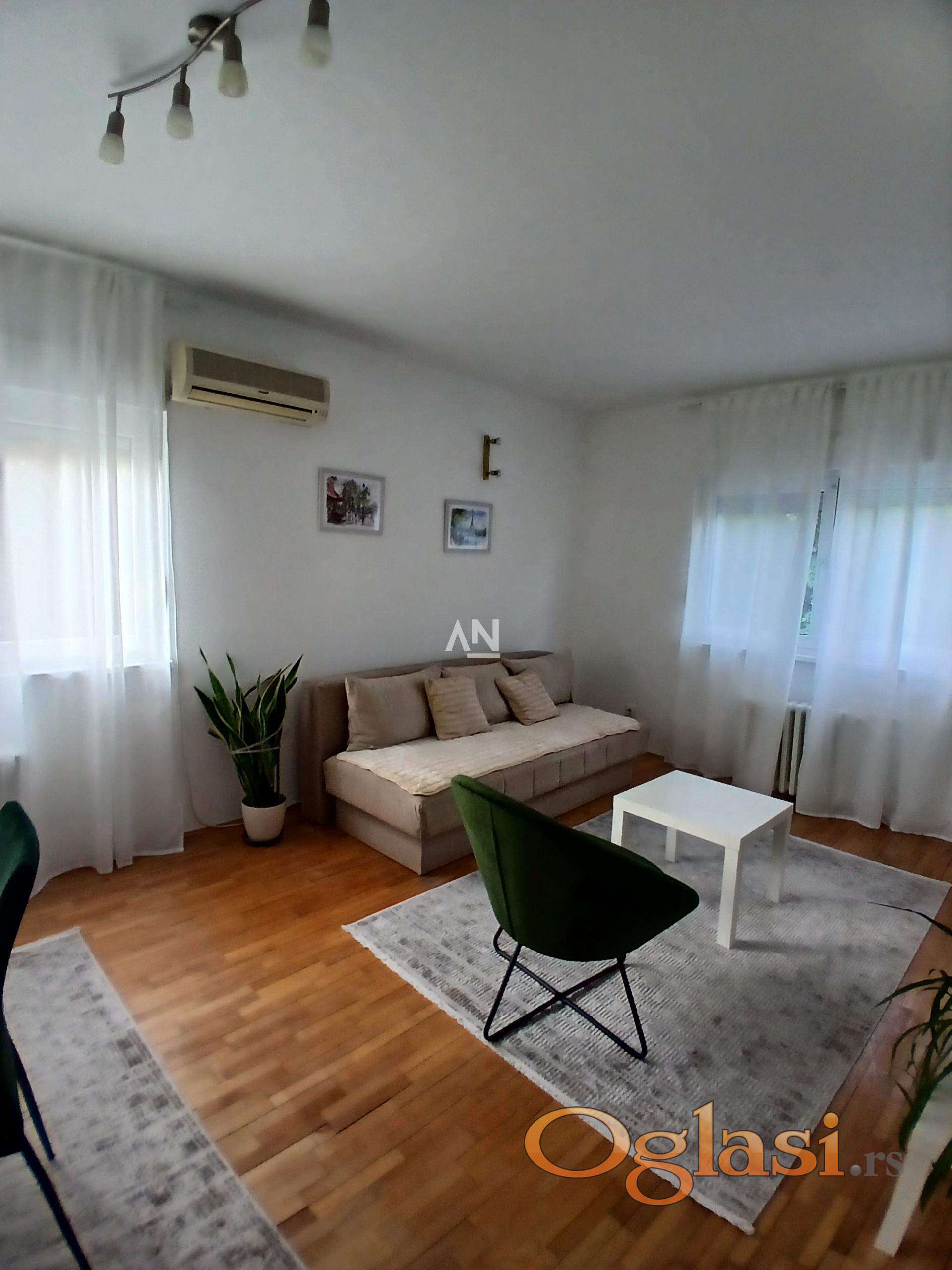 Izdajemo odličan 2.0 stan, kompletno namešten i opremljen, na drugom spratu, uredne zgrade, miran kraj. Prostorije: predsoblje, dnevna soba sa trpezarijom, po potrebi i druga spavaća, spavaća soba, kuhinja, kupatilo! Bizina autobuskih stajališta omogućava povezanost sa svim delovima grada. Do Slavije, Kalenića ili Zemuna! Miran kraj sa dosta zelenila, blizina svih potrebih sadržaja za udoban gradski život. Dozvoljeni mali kućni ljubimci, uz dupli depozit! Za svaku preporuku! Mesečno plaćanje + depozit. Agencijska provizija se plaća u skladu sa opštim uslovima poslovanja.//Agent:063-286-511//