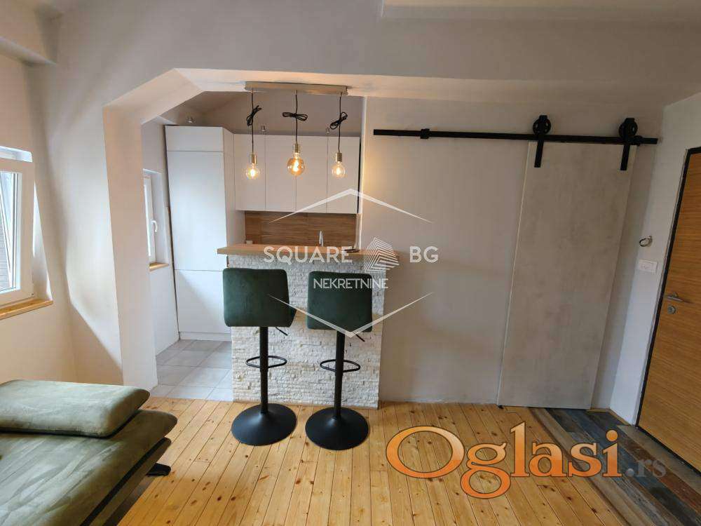 Prelep stan sa malim rezijama sastoji se od dnevnog boravka,kupatila, sankom koji odvaja kuhinju od dnevnog boravka i u gorenjem delu od spavace sobe i odvojenog ormana kao prostorije. U stanu je sve novo i staro 3 godine kada je stan i renoviran. U stanu vec ima brz internet i kablovska instalirani, odmah useljivo. Stanica na 70m od zgrade gde staju autobusi 16,23,25 dok na 5 minuta od stana je BIG trzni centar i tu Vam staju sledeci autobusi 25P,74,32. infrastukutra stana je sjajna u krugu od 100m imate apoteku,Maxi,DM,LiLY, 2 banke, menjacnicu ,pekaru, radnju koja radi 24h. Agencijska provizija 50%