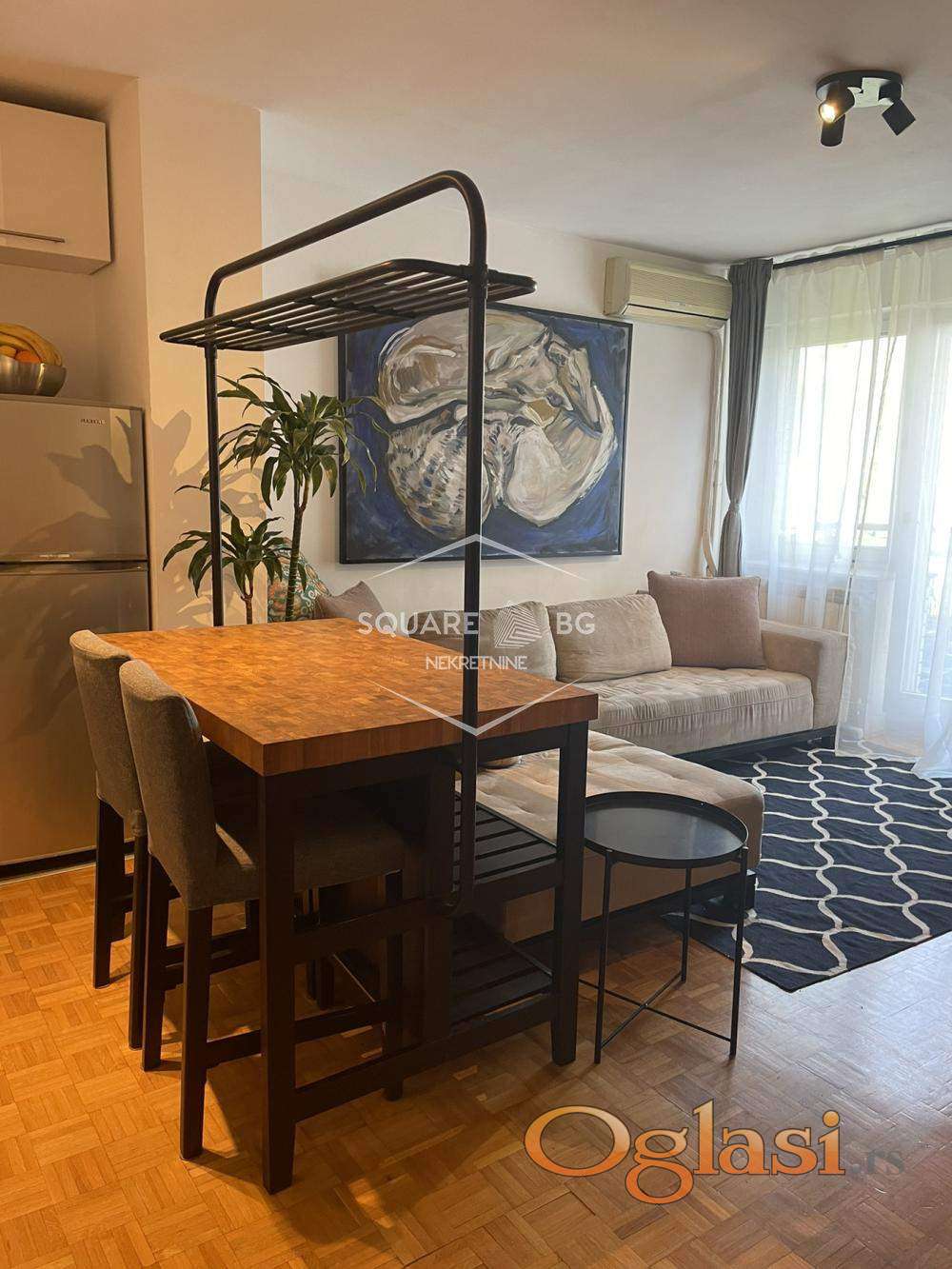 A fully furnished, modern apartment is available for rent in one of the most desirable and beautiful areas of New Belgrade – just steps away from the river and the popular “Street of the Hungry” (Ulica gladnih). The perfect location for those seeking peace and quiet while still being close to all urban amenities.