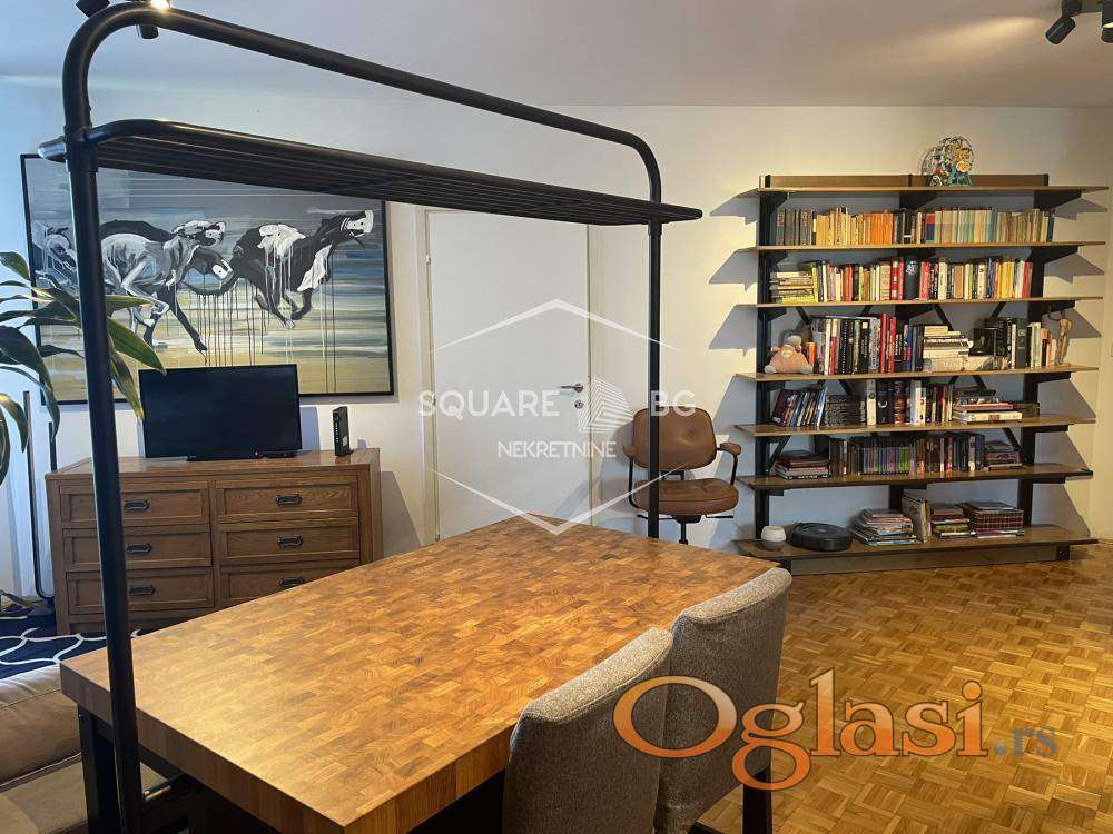 Stan površine 44 m², sa dodatnom terasom od 2 m², sastoji se od open space dnevnog boravka sa kuhinjom i trpezarijom, odvojene spavaće sobe, funkcionalnog predsoblja i potpuno renoviranog kupatila. Sve prostorije su opremljene američkim plakarima, što obezbeđuje obilje prostora za odlaganje. Stan dodatno poseduje i sklopivi radni sto koji se lako uklanja kada nije u upotrebi, čime se maksimalno čuva prostranost enterijera.