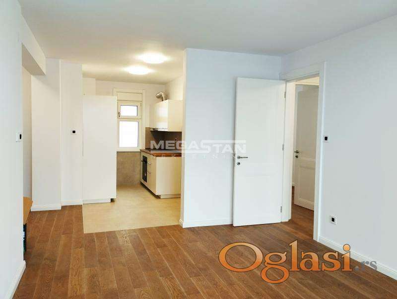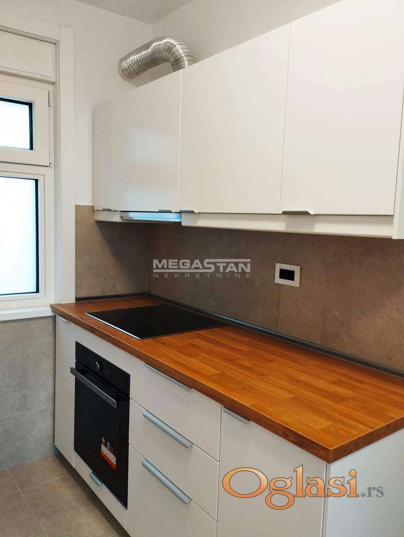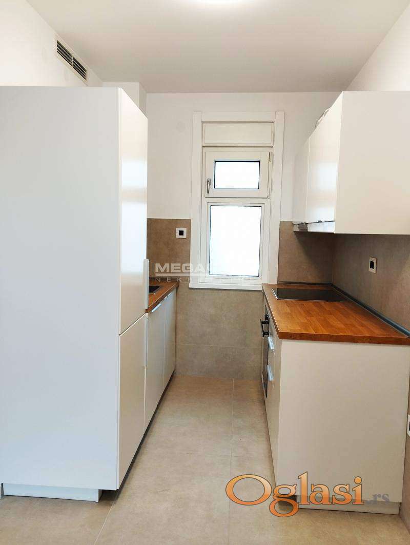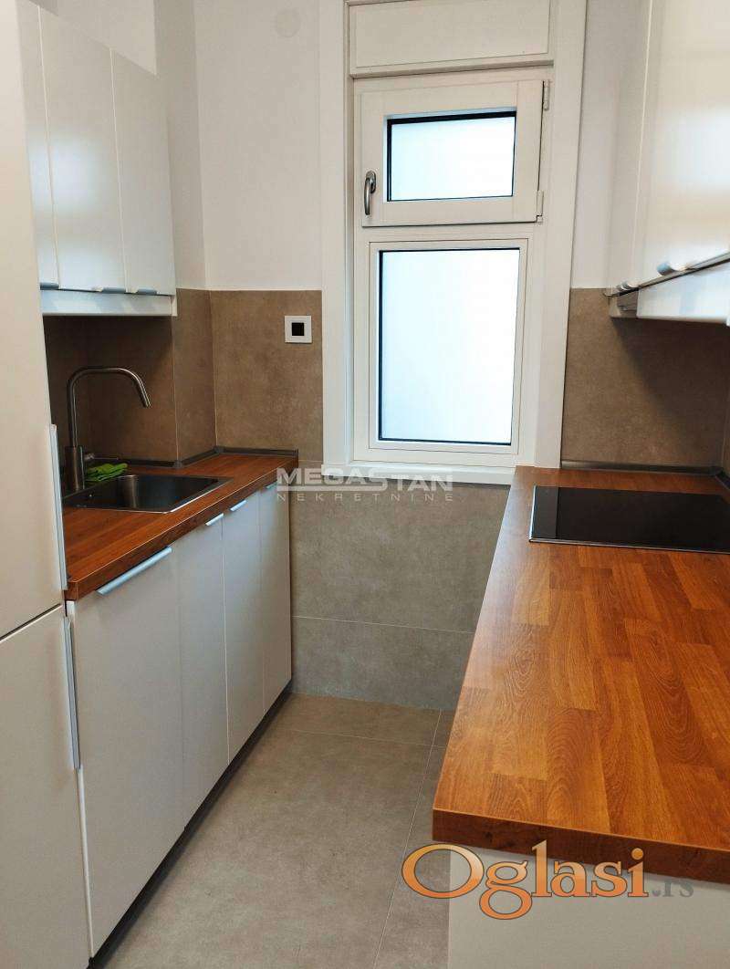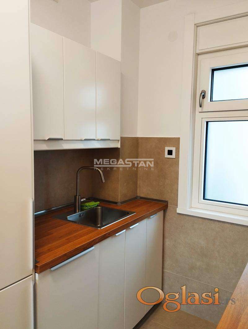 Elegantan prostor izdaje se polunamešten sa kuhinjom i belom tehnikom, rernom, pločom, frižiderom, sudo-mašinom.