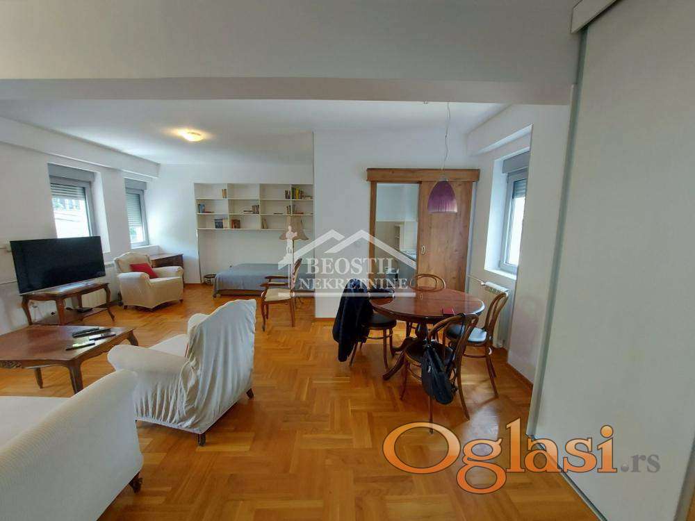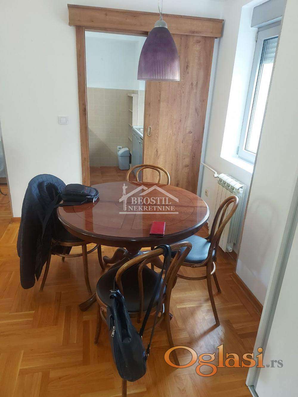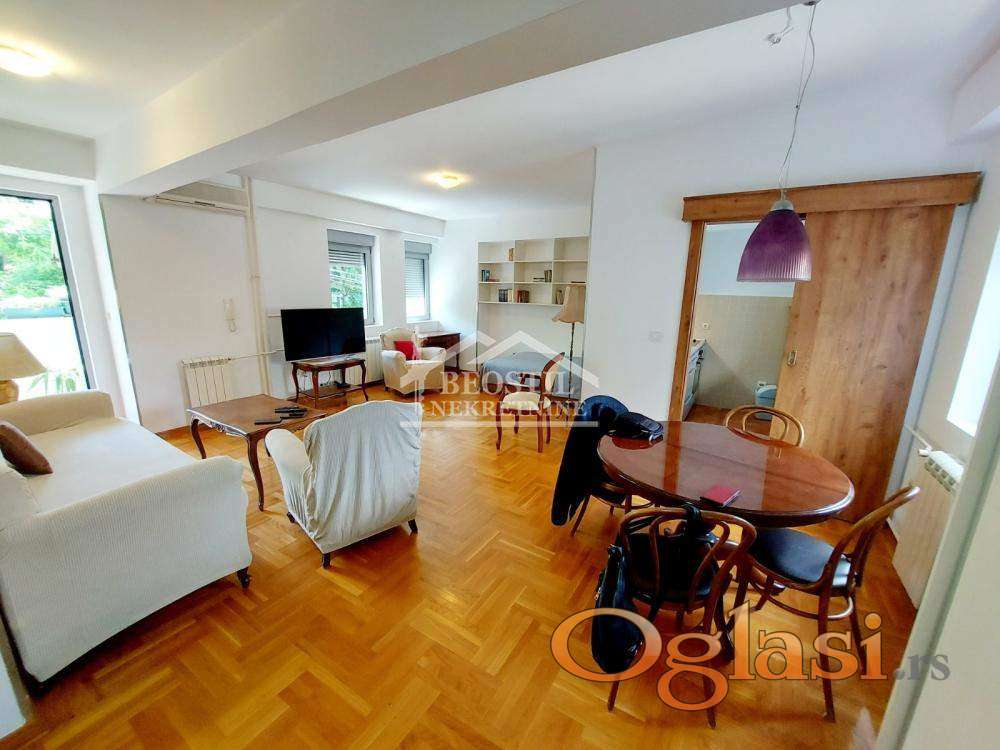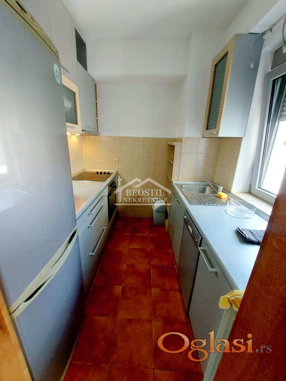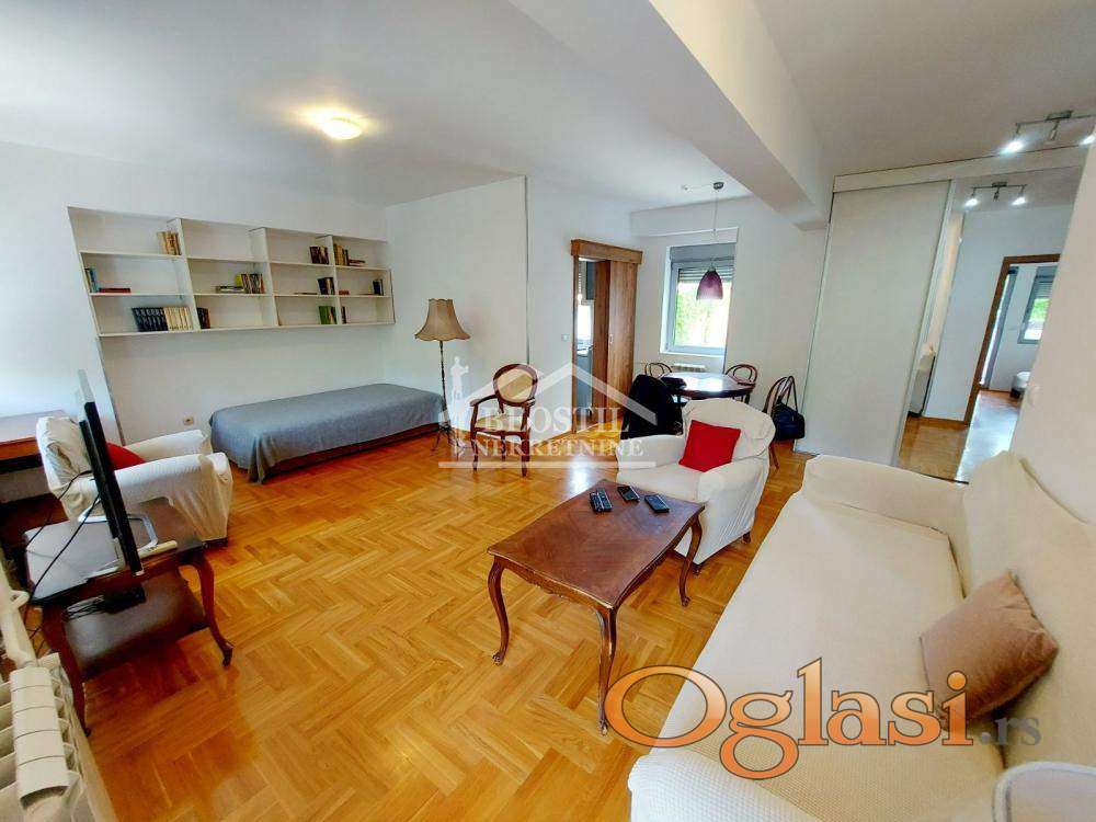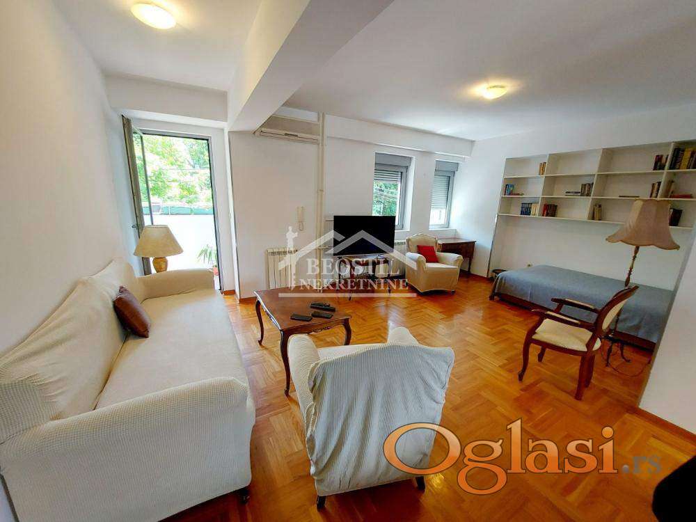 Izdaje se veoma komforan, svetao, dvostrano orijentisan dvosoban stan na odličnoj lokaciji, u mirnoj ulici nedaleko od Bulevara kralja Aleksandra.