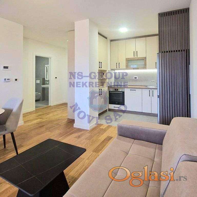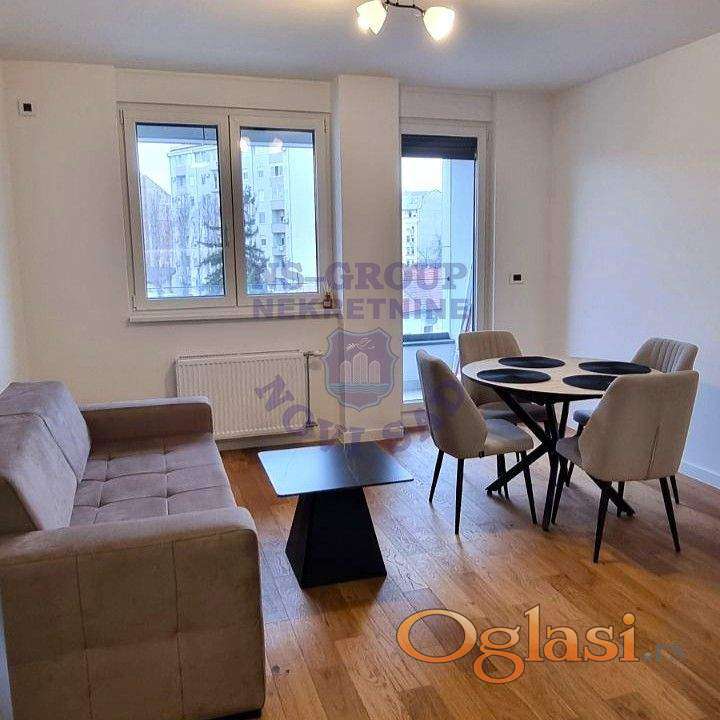 Predstavljamo Vam prelep, komforan stan u novoj, kvalitetno građenoj zgradi sa liftom. Stan je smešten na prvom spratu i kompletno je opremljen modernim i kvalitetnim nameštajem, a kuhinja, rađena po meri, pruža dodatnu funkcionalnost i praktičnost. Uz nju dolazi i sva neophodna bela tehnika, kao i mašina za sudove i kombinovana mašina za pranje i sušenje veša. Prostrana terasa je ulično orijentisana. Uz stan možete zakupiti i zatvorenu ostavu, kao i garažno mesto uz doplatu od 100e. Stan je odmah useljiv, a za više informacija pozovite nas i zakažite razgledanje!