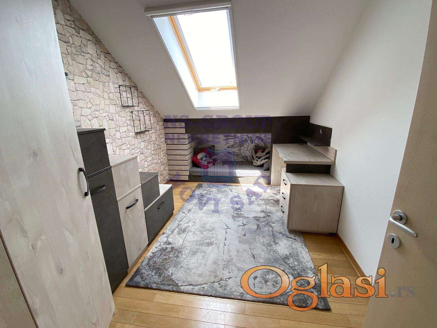 Nesvakidašnja ponuda luksuzne nekretnine na prestižnoj lokaciji – savršena kombinacija prostora, stila i komfora. U jednoj od najpoznatijih ulica na Telepu, u kvalitetnoj novogradnji, izdaje se izuzetan troiposoban stan od uknjiženih 104 m² (u prirodi oko 120 m²), sa mogućnošću proširenja na dodatnu garsonjeru od 28 m², čime se dobija impozantan prostor od oko 150 m². Stan se nalazi na trećem spratu i ističe se prelepom, prostranom terasom s pogledom na Frušku goru, elegantnim kosinama i krovnim prozorima koji prostoru daju prirodnu svetlost i toplinu. U enterijeru dominiraju moderan dizajn i vrhunski materijali – stan je potpuno opremljen kvalitetnim nameštajem i belom tehnikom, uključujući mašinu za pranje i sušenje veša. Grejanje je na gas, što omogućava značajnu uštedu tokom godine. U cenu zakupa uključena su i dva privatna parking mesta u dvorištu zgrade. Visina zakupa za troiposoban stan iznosi 1.750 evra, dok je cena zakupa celokupnog prostora sa garsonjerom 2.000 evra. Ukoliko tražite reprezentativan, prostran i svetao dom u mirnom delu grada, a opet na korak od svega – ovo je retka prilika. Kontaktirajte nas i zakažite gledanje.