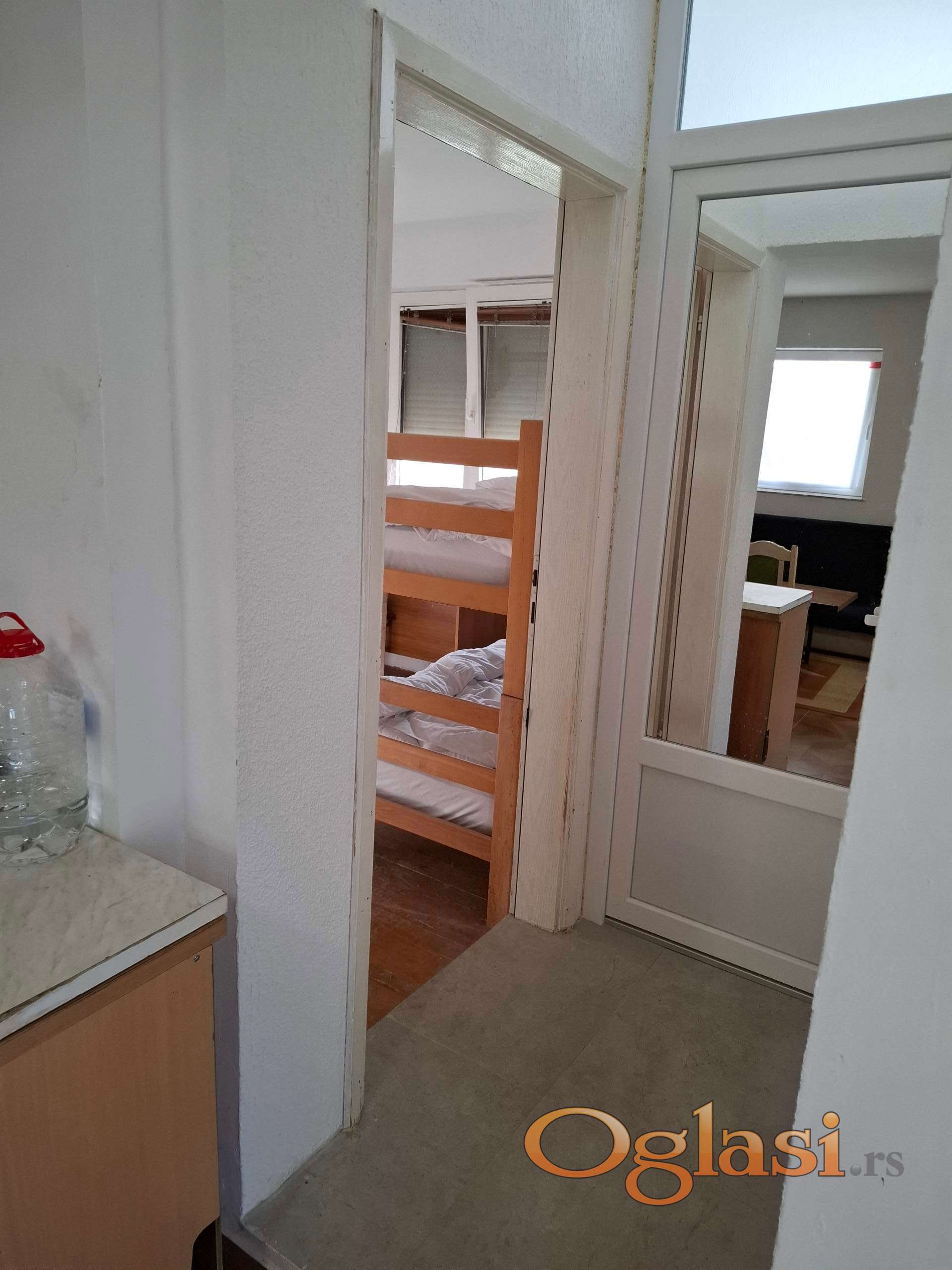 Izdajem potpuno opremljen i namesten, smestaj za 8 osoba. Smestaj poseduje odvojenu spavaću sobu, veliki boravak sa kuhinjom, prostrano kupatilo, sa klimom, internetom. Ispred stana se nalazi parking za troje vozila. Stan se nalazi u neposrednoj blizini autobuske stanice, škole, vrtića, prodavnice.
