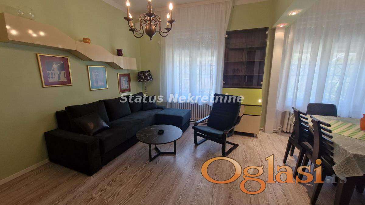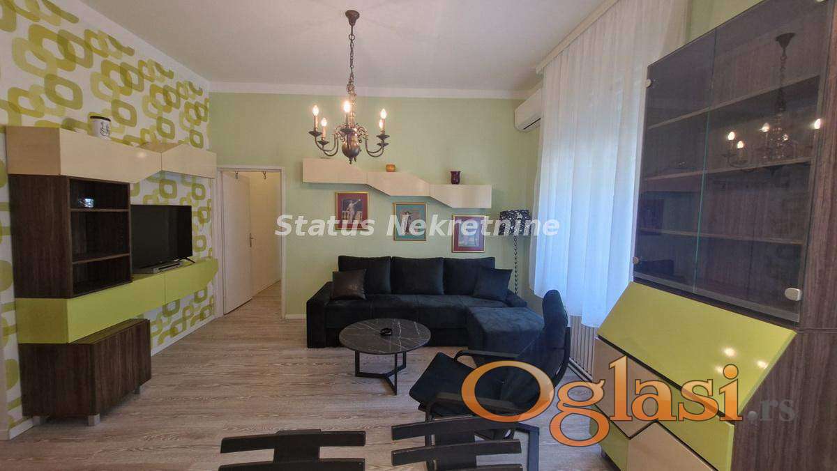 Izdaje se lepo namešten stan, po strukturi dvoiposoban. Stan se nalazi u mirnoj ulici, bez puno buke. Ima dve spavaće sobe, dnevni boravak sa kuhinjom i trpezarijom i kupatilo. Stan je kompletno renoviran, nalazi se na prvom spratu u zgradi bez lifta. Blizu Keja i Centra grada.