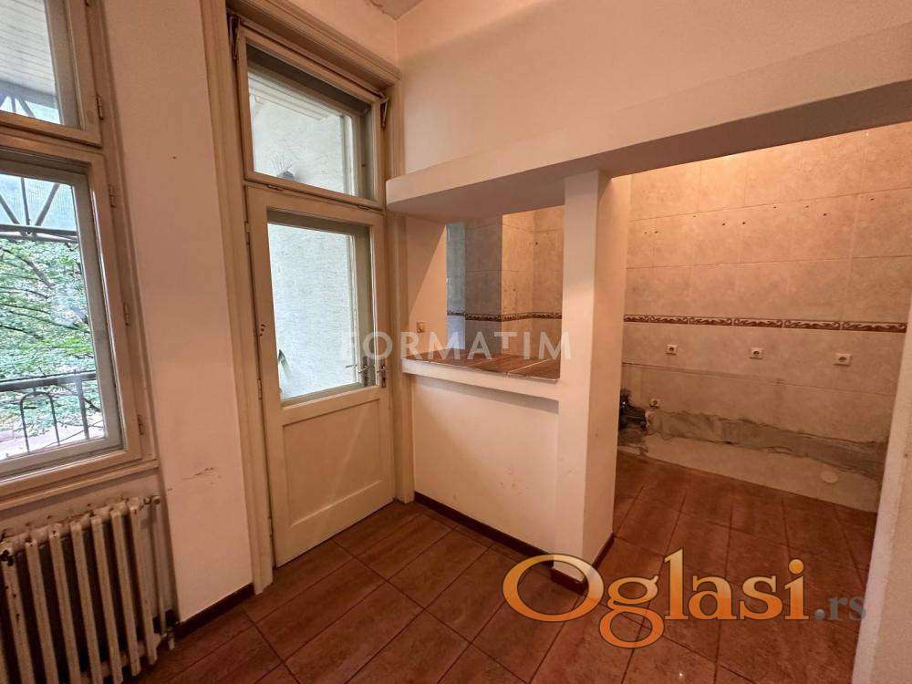 Vračar, Kalenić, Mileševska ulica. Petosoban prazan stan, površine 305m², na prvom spratu, kao jedini stan. Pet prostranih soba, tri kupatila, terasa.