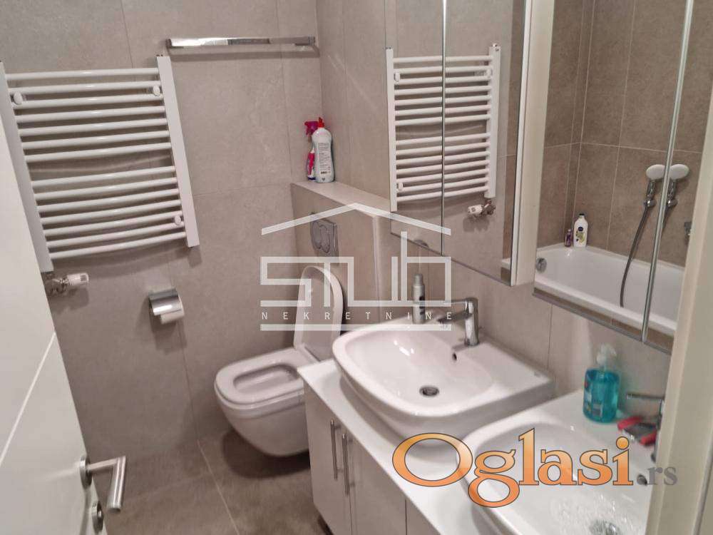 Iz ponude stanova za izdavanje,izdvajamo moderan i funkcionalan stan površine 62m2.Po strukturi je trosoban, a od prostorija poseduje:dnevni boravak sa kuhinjom i trpezarijom,master spavaću sobu sa sopstvenim kupatilom, i puno dnevnog svetla,manju spavaću sobu koja ima izlaz na terasu,uhodnik i još jedno kupatilo sa tuš kabinom.Stan je izuzetno lepo i moderno opremljen, vodeći računa da se zadovolje potrebe najzahtevnijih klijenata.Poseduje smart home sistem i svaka soba ima svoju inverter klimu.Dodatnu bezbednost i sgurnost omogućuju video nadzor i fizičko obezbeđenje. Lokacijiski je odlično povezan sa ostalim delovima grada.U blizini se nalaze svi bitni infrastrukturni sadržaji koji omoogućavaju visok nivo kvaliteta života.