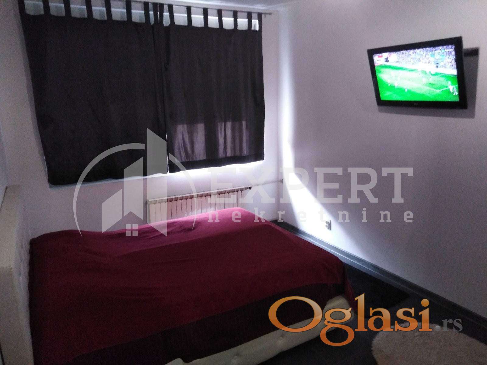 centralno. Ima klimu. Komplet je opremljen nameštajem i svom potrebnom belom tehnikom. Lepo je osvetljen i orijentisan. U cenu je uključen internet i dve kablovske. Izdaje se ozbiljnim zakupcima na duži vremenski period.