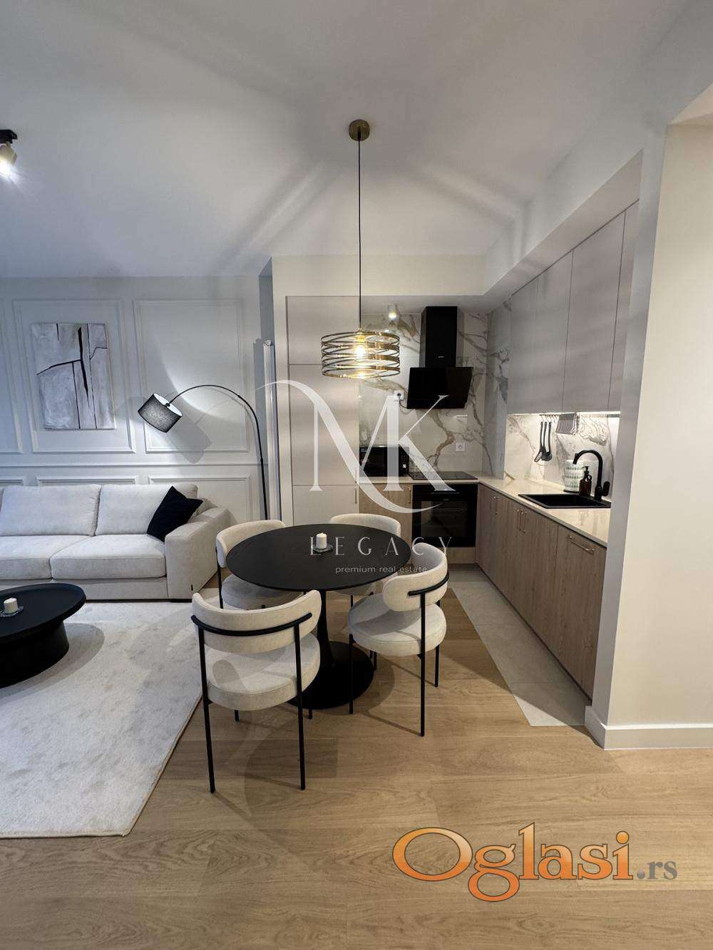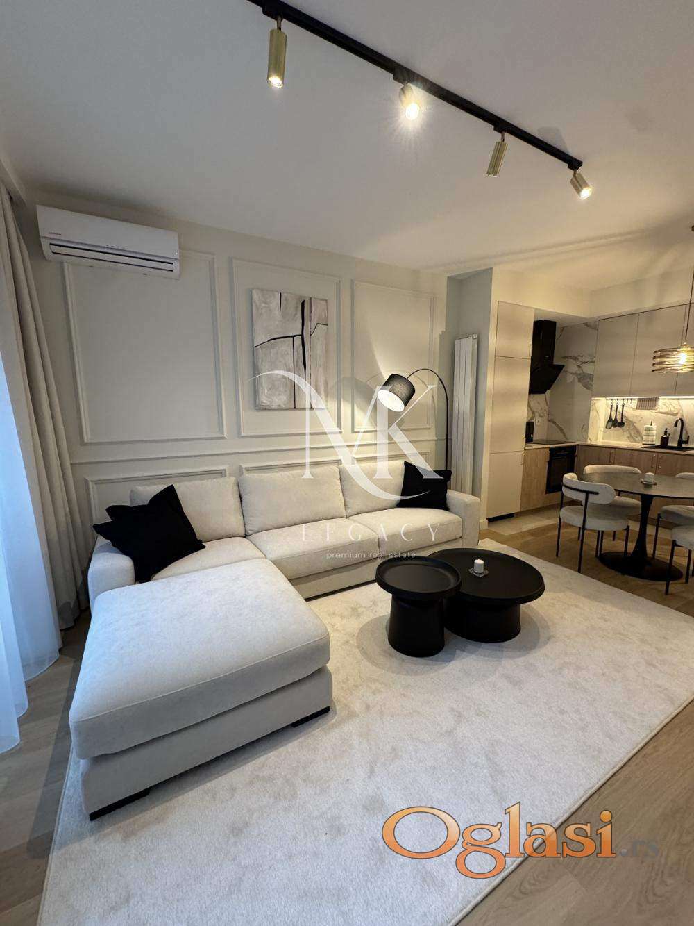 Kompletno moderno opremljen sa kompletnom belom tehnikom, neophodnim pokućstvom i posebnim mašinama za pranje i sušenje veša.