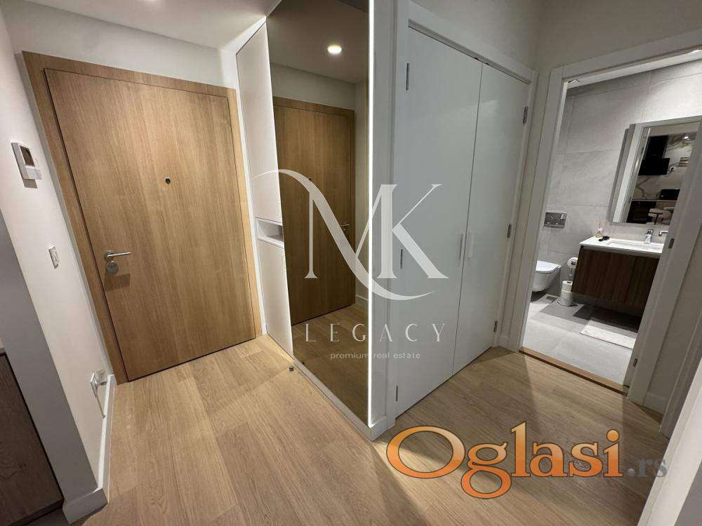 Izdajemo dvosoban stan u zgradi King's Park koja se nalazi pored Savskog parka, u centralnom i mirnom delu Beograda na vodi. Sastoji se od: ulaznog hodnika, kuhinje sa dnevno-trpezarijskim delom, vešernice, kupatila, spavaće sobe i terase. Orijentisan ka unutrašnjem dvorištu.