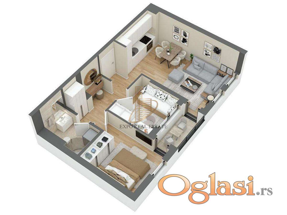 Stan odlikuje obilje prirodne svetlosti, savremen dizajn i visok kvalitet završne obrade, što ga čini idealnim domom za porodičan i komforan život.