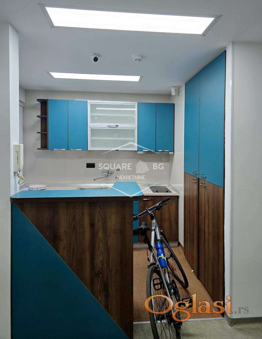 Nakon predsoblja ulazi se u prostranu čekaonicu koja može biti i prijemna kancelarija. Sa strane je potpuno opremljena kuhinja sa svim ugrađenim elementima i prostorom za ostavu, zatim poseban radni sto za sekretaricu sa pultom, hodnik i novo kupatilo.