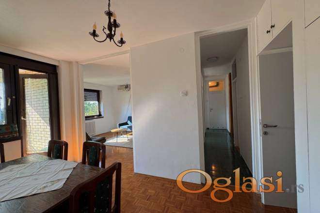 Stan se nalazi u lepo održavanoj zgradi na drugom spratu sa liftom. Prostire se na 75 m² i odiše prijatnom atmosferom i funkcionalnim rasporedom. Stan se sastoji od ulaznog hodnika koji vodi u dnevni boravak povezan sa trpezarijskim delom iz kog se izlazi na terasu okrenutu ka zelenom dvorištu, dok izdvojena kuhinja ima sopstveni izlaz na drugu terasu. Stan poseduje dve spavaće sobe – jednu veću i komforniju i drugu manju, idealnu za radni prostor ili dečiju sobu, kao i dva kupatila koja olakšavaju svakodnevni život.