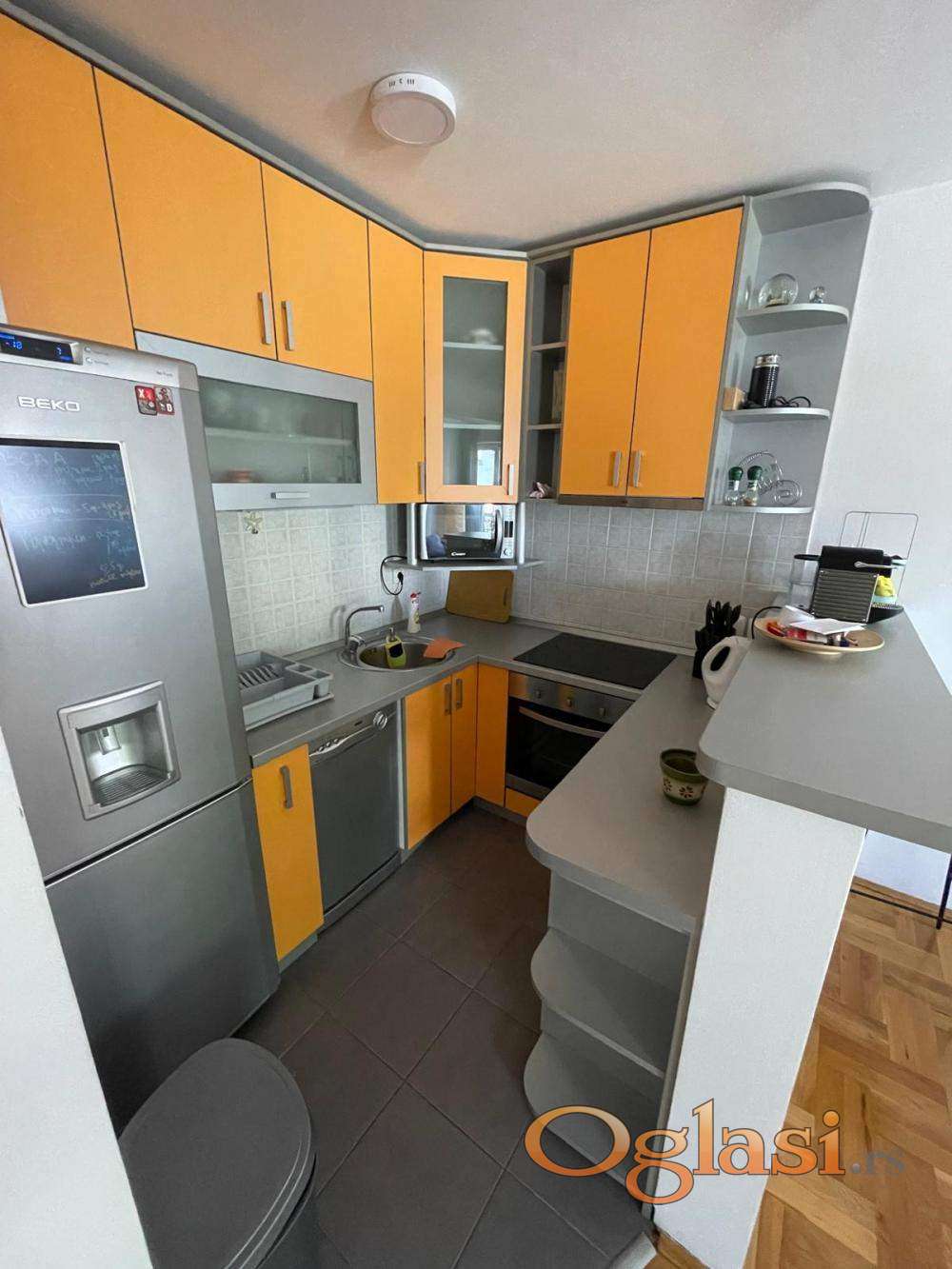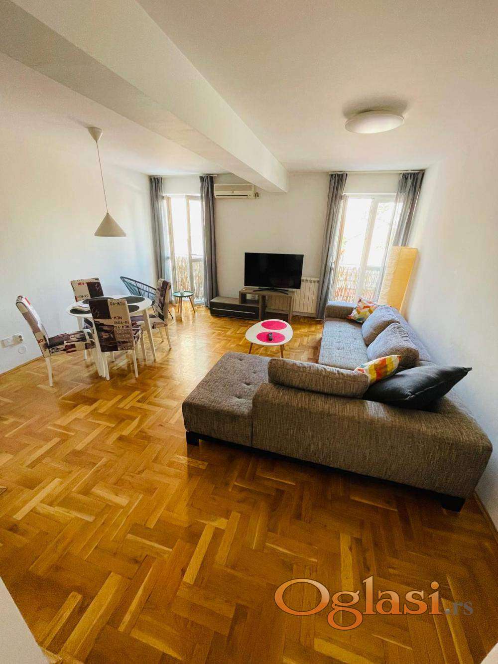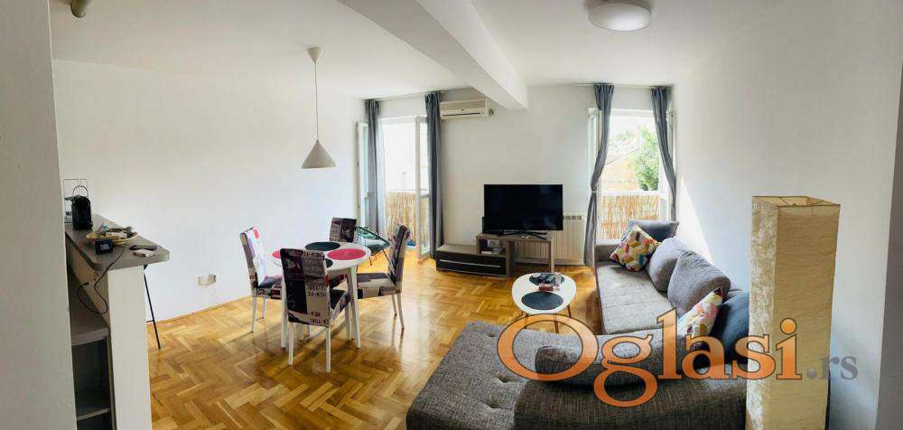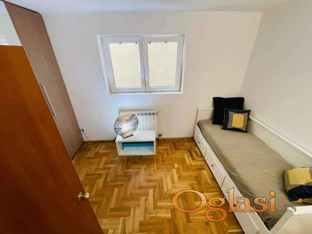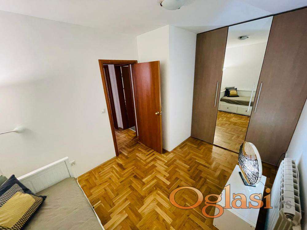 2 spavaće sobe sa bračnim krevetima, prostran dnevni boravak od 25m2, kuhinja sa svim aparatima, EG na struju, I/IV sprata, interfon sa kamerom. Mesečni računi (infostan, čišćenje): 4000 din.