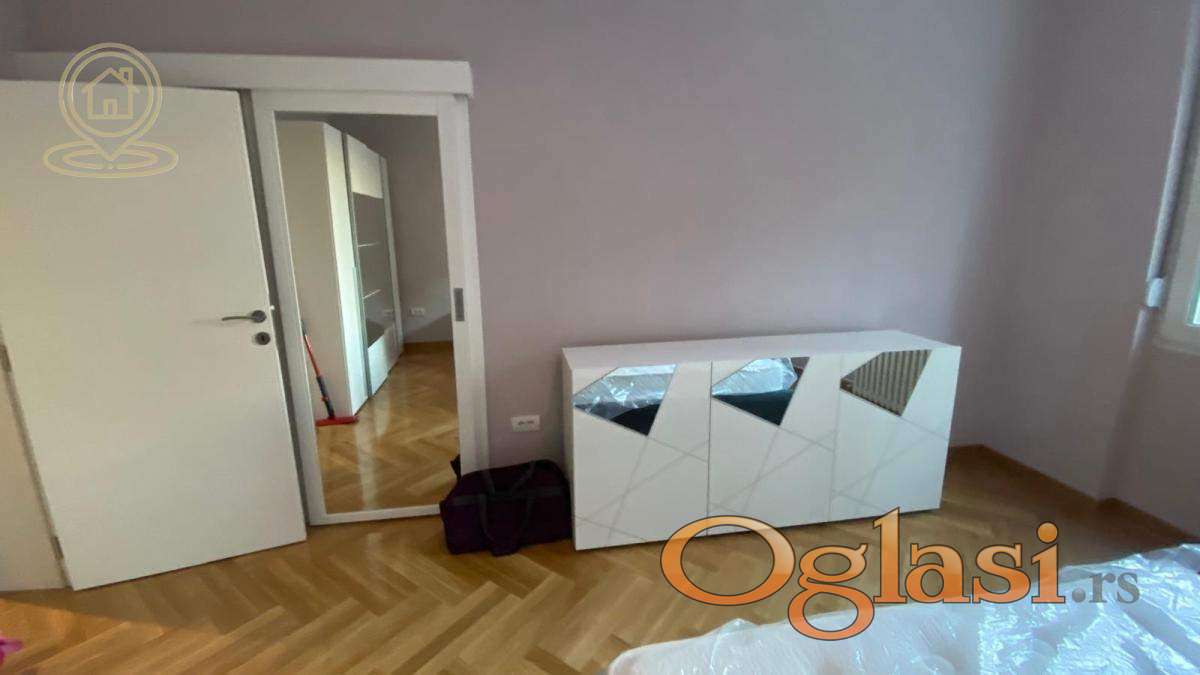 Izdaje se izuzetno lep, komforan i savršeno održavan dvosoban stan (2.0) površine 61 m², smešten u mirnom delu Vračara, kod Hrama Svetog Save – jedne od najprestižnijih i najtraženijih lokacija u Beogradu.