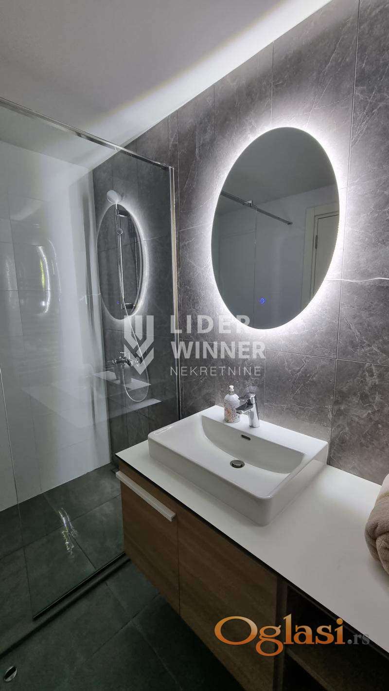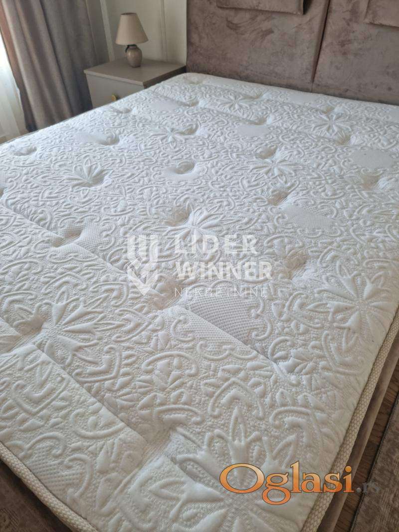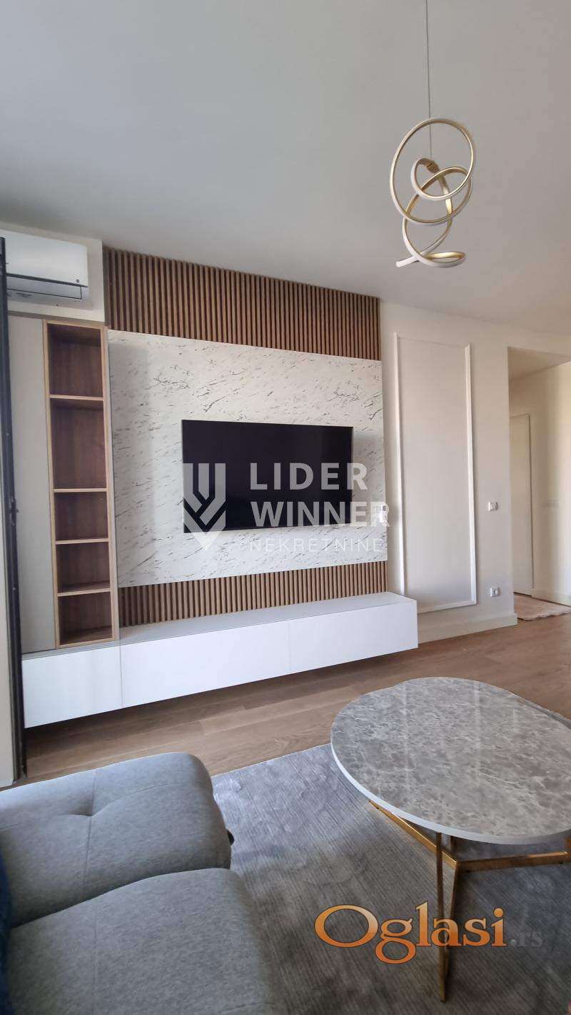 BW najsavremenije naselje koje nudi najbolje. Ovaj stan je spoj prirode, luksuza, udobnosti i sigurnosti. Dnevni boravak je povezan sa kompletno opremljenom kuhinjom, svim Bosch aparatima. Terasa i spavaća soba sa najfinijim nameštajem stan čine umetničkim delom koje iskustvo svakodnevnog života podiže na viši nivo. Garažno mesto 100e. agencijska provizija 50%