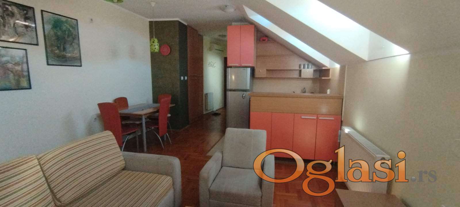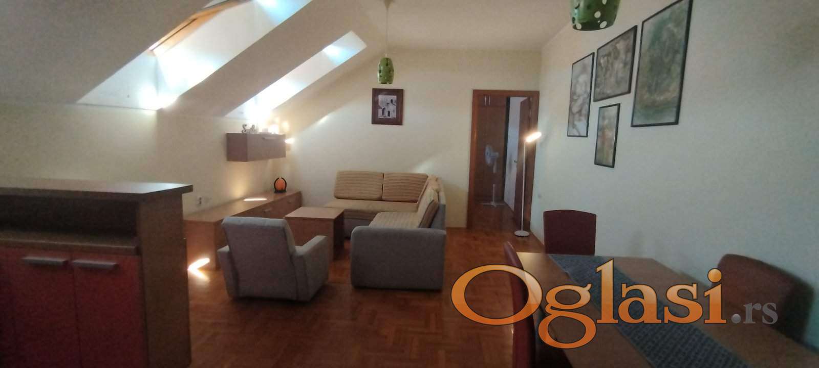 Izdajem stan u Lasla Gala ulici. Stan se nalazi u potkrovlju, na 6. Spratu. Stan je sam na spratu. Lift ide do 5. Sprata i ima par stepenika do stana. Stan je dvosoban, 45m2. Stan se izdaje od 05.02.2026.