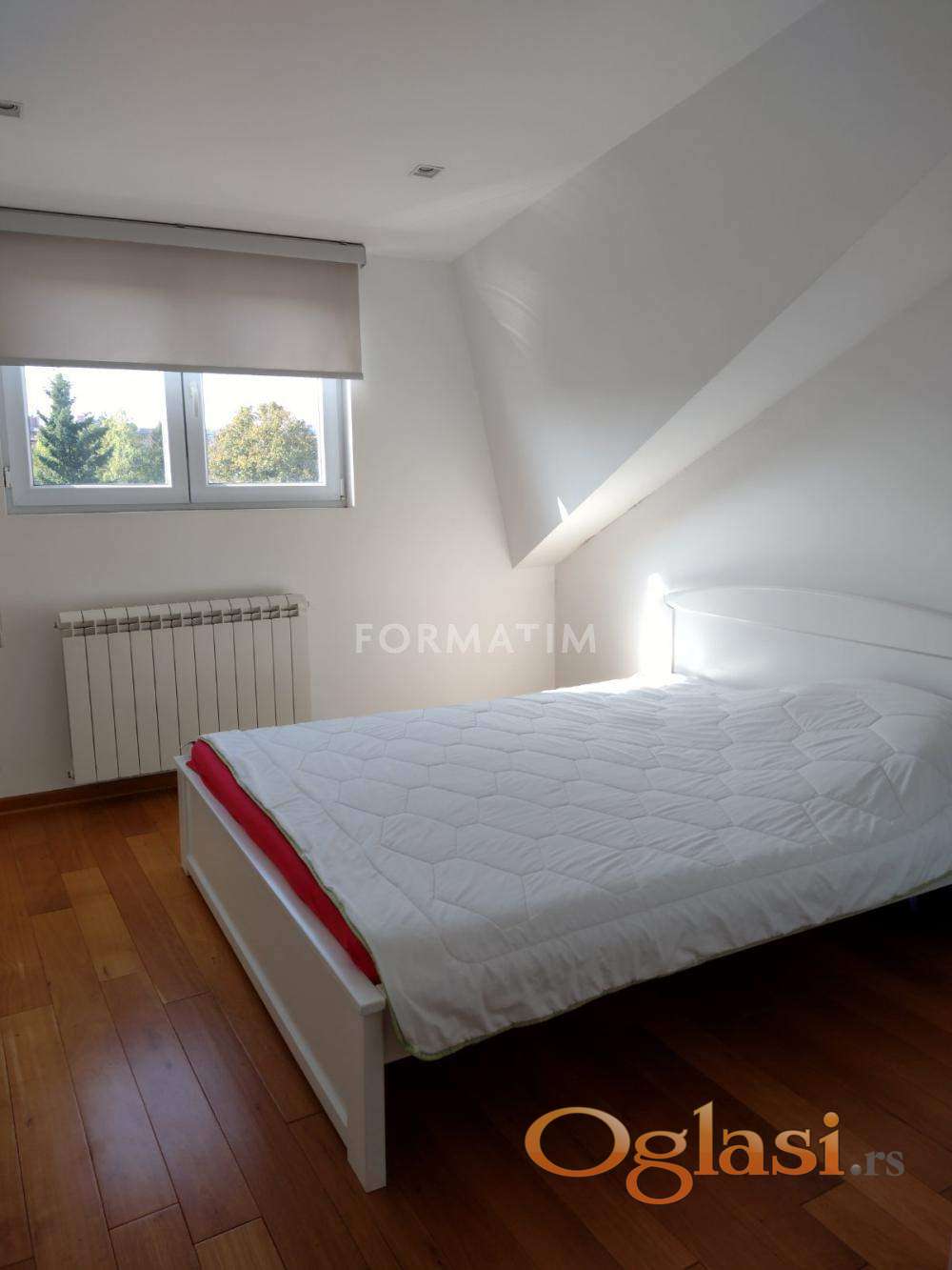 Zvezdara,Preševska ulica. Lux 3.0 stan površine 100m² u novijoj gradnji, 6/6. Veliki dnevni boravak, dve odvojene spavaće sobe, kuhinja,trpezarija, kupatilo, terasa. Kosine ne smetaju za normalno funkcionisanje. CG sa kalorimetrima, klima, internet, KATV, lift. Najlepši deo Zvezdare, na samo 3 min od Zvezdarske šume. U blizini su pošta, marketi, banka, pumpa koja radi 24h. Postoji mogućnost iznajmljivanja garažnog mesta, a parking u ulici nije zoniran. Jednosmerna mirna ulica. Za svaku preporuku. Stan se ne izdaje strancima, Useljiv odmah. Agencijska provizija iznosi 50% od dogovorene mesečne zakupnine jednokratno. Zvezdara, Preševska street. Lux 3.0 apartment of 100m² in a newer building, 6/6. Large living room, two separate bedrooms, kitchen, dining room, bathroom, terrace. Slopes do not interfere with normal functioning. CG with calorimeters, air conditioning, internet, KATV, elevator. The most beautiful part of Zvezdara, just 3 minutes from Zvezdara Forest. Nearby are the post office, markets, a bank, and a 24-hour pump. The agency commission is 50% of the agreed monthly rent once. There is a possibility to rent a garage space, and parking on the street is not zoned. One way quiet street. For every recommendation. The apartment is not rented out to foreigners, ready to move in immediately. The agency commission is 50% of the agreed monthly rent once. .