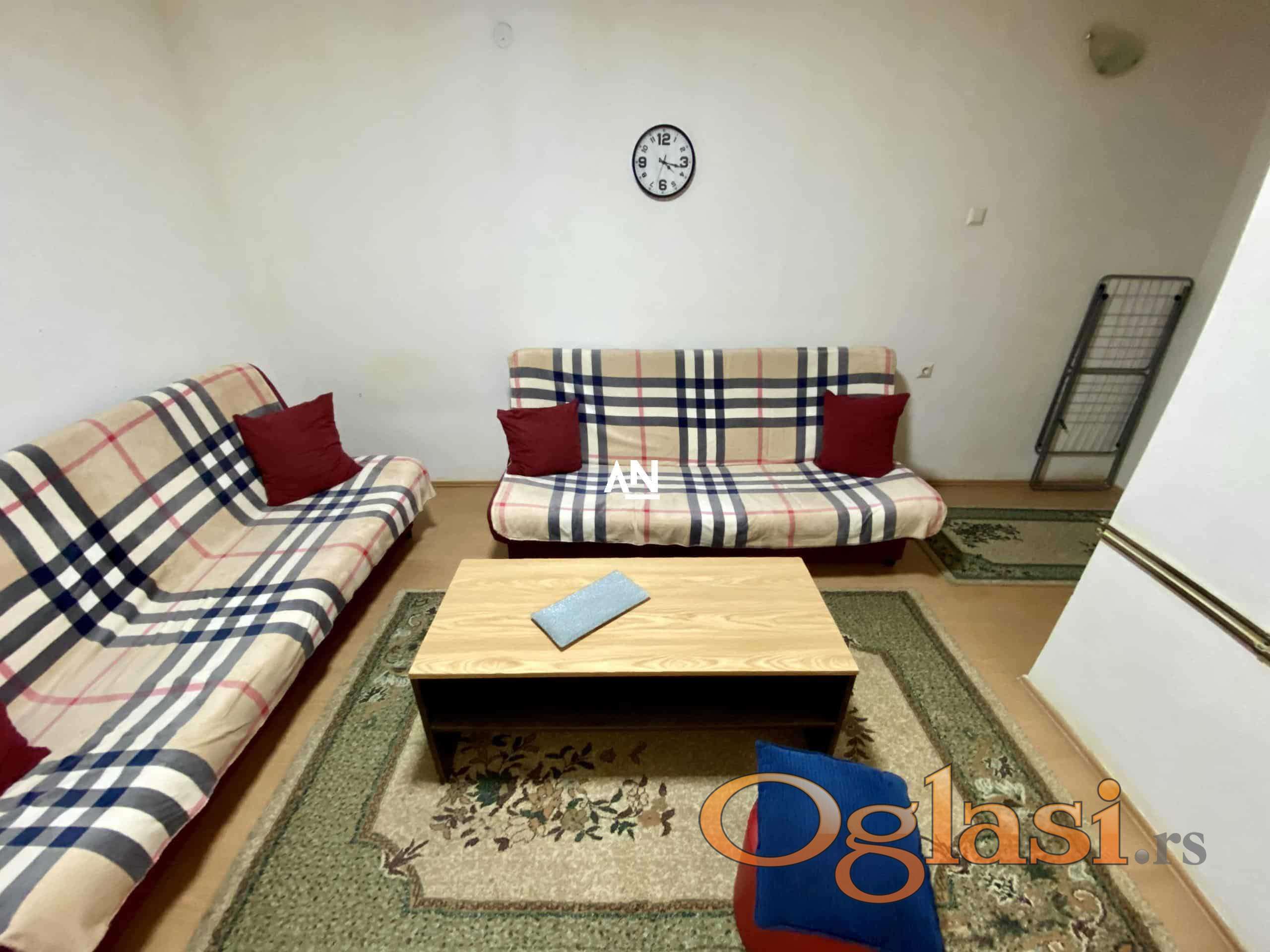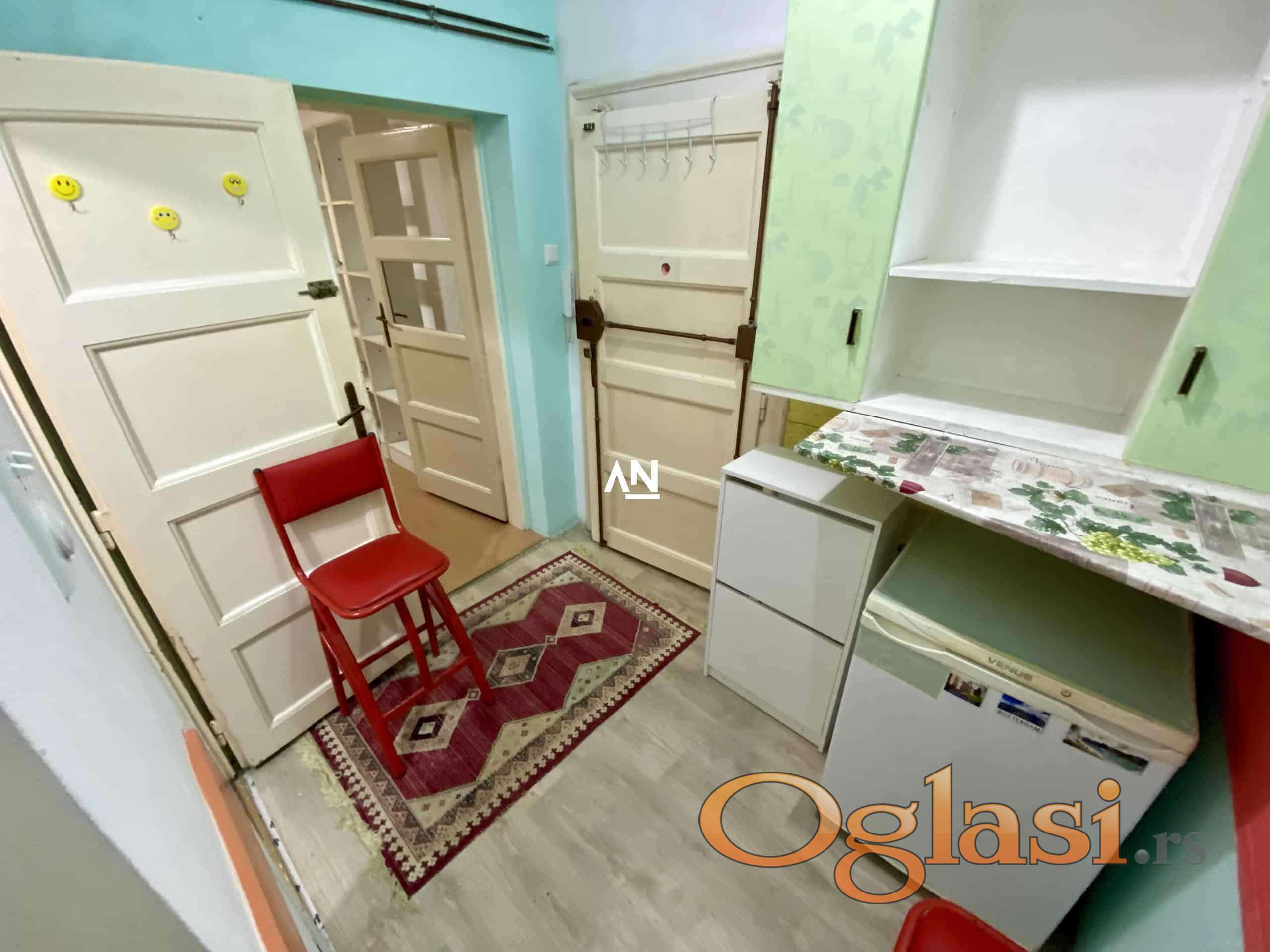 Izdajemo skroman mali stan na odličnoj lokaciji između Vukovog spomenika i Kalenić pijace. Stan je kompletno opremljen starijim nameštajem ali sve funkcioniše. Grejanje je centralno, kablovsku i internet birate sami. Odmah useljiv, depozit u visini jednog zakupa obavezan. Agencijska provizija se plaća u skladu sa opštim uslovima poslovanja.
